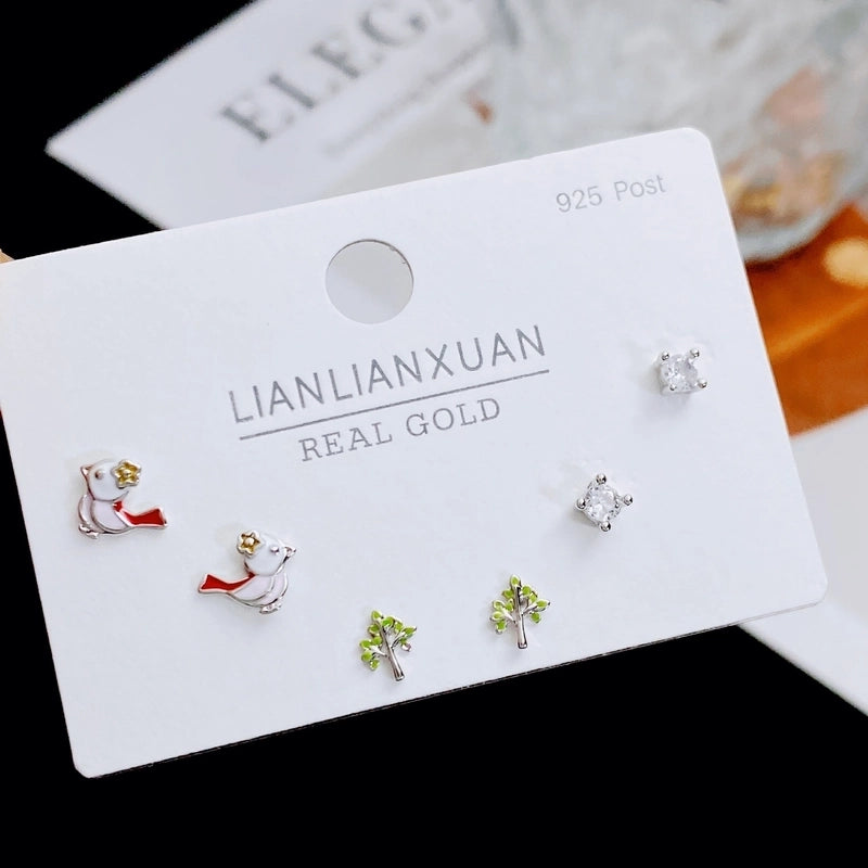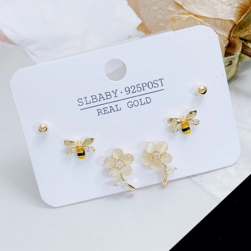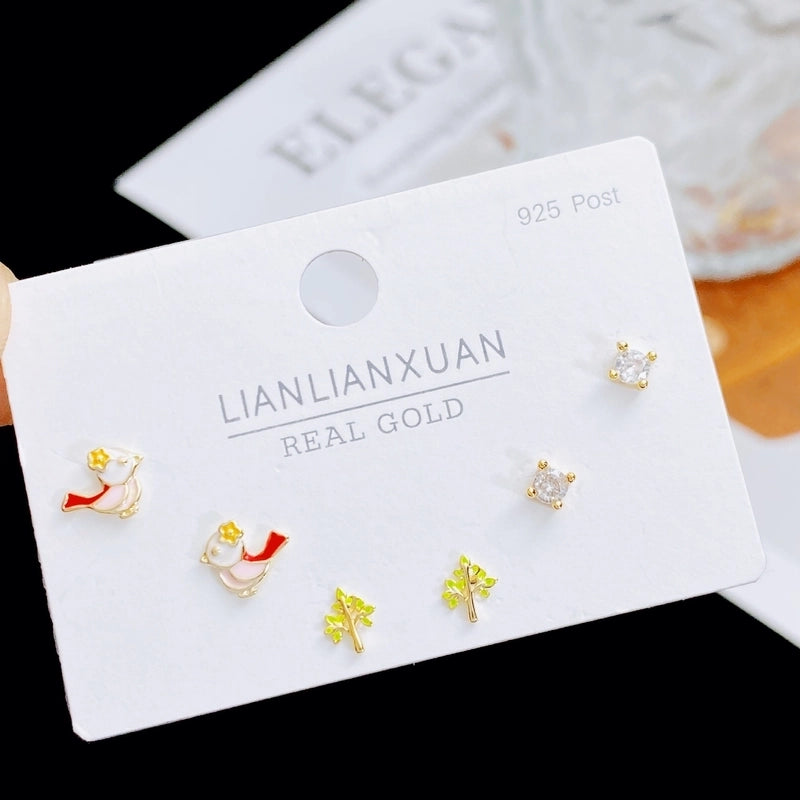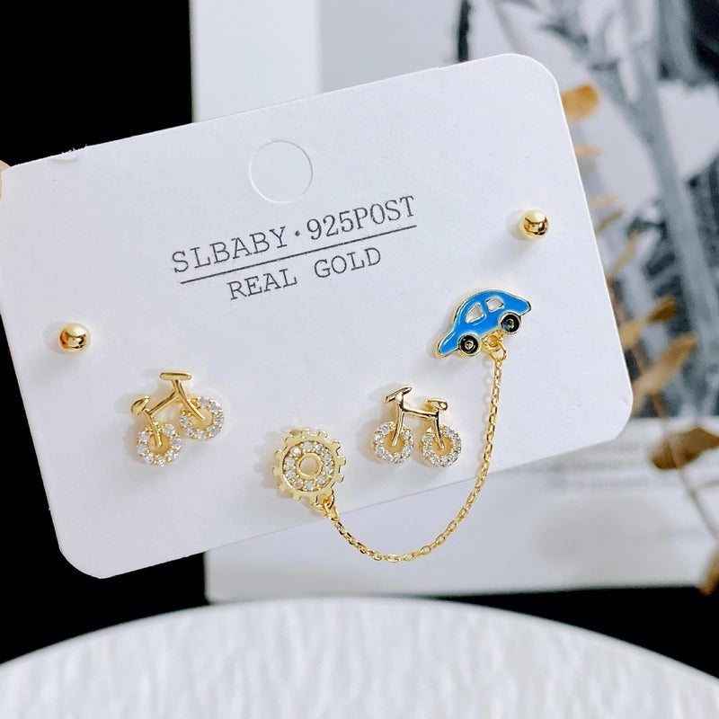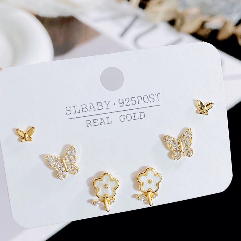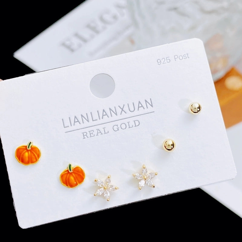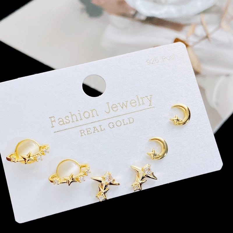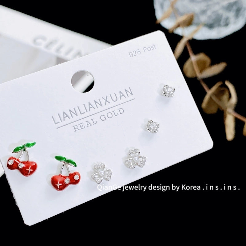 1 Set Sweet Heart Shape Plating Copper Ear Studs