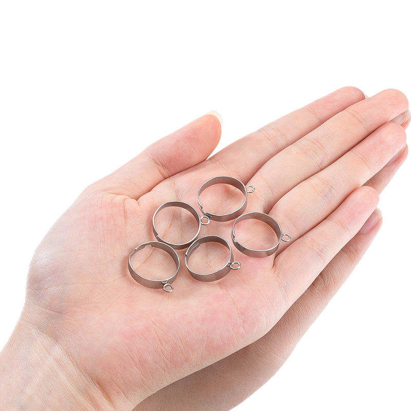 10 PCS/Package Diameter 19mm 304 Stainless Steel Round Polished Pendant Ring Base Support Jewelry Accessories