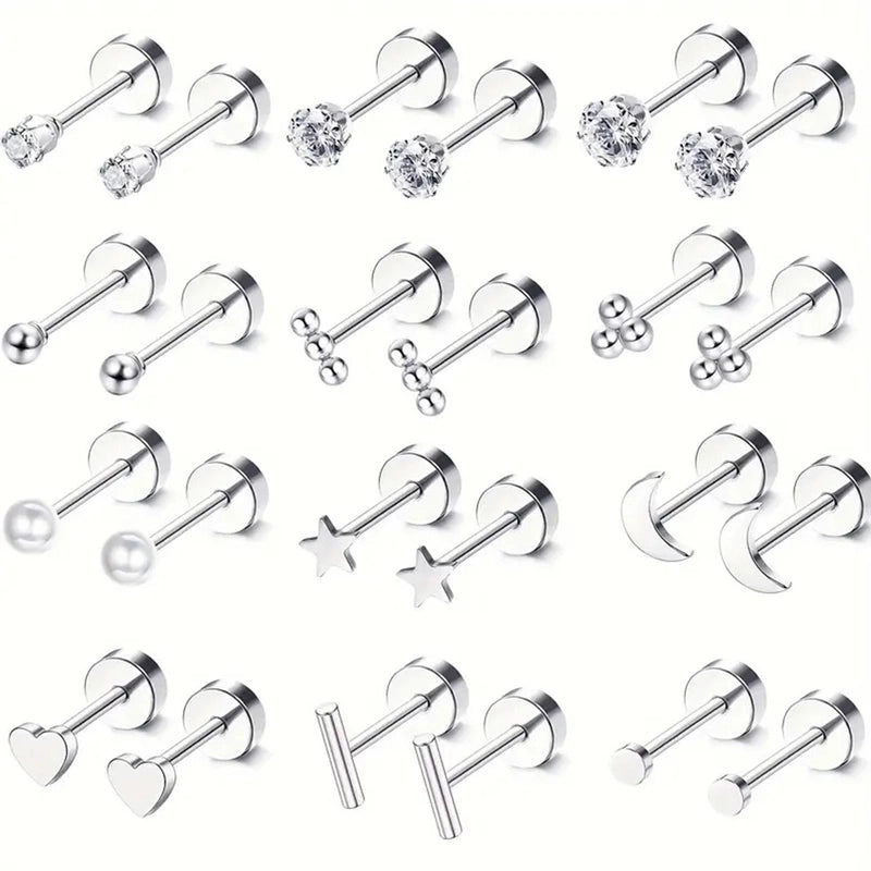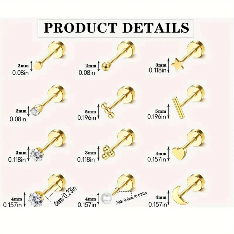 Be the first to review “12 Pairs 1 Pair Minimalist Pentagram Round Moon Plating Inlay 304 Stainless Steel Pearl Zircon 18K Gold Plated Ear Studs” Cancel reply