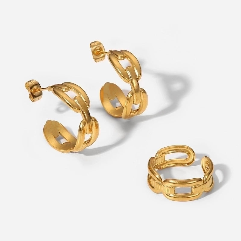 18k Gold Stainless Steel Coffee Bean Buckle Chain C-type Earrings Open Ring