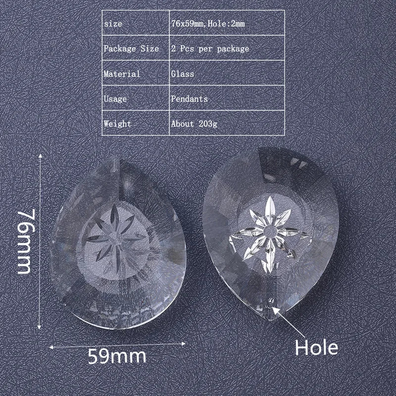 Be the first to review “2 Pieces Per Pack 59*76mm Hole 2~2.9mm Glass Glittery Water Droplets Transparent Pendant Suncatcher Raw Material” Cancel reply
