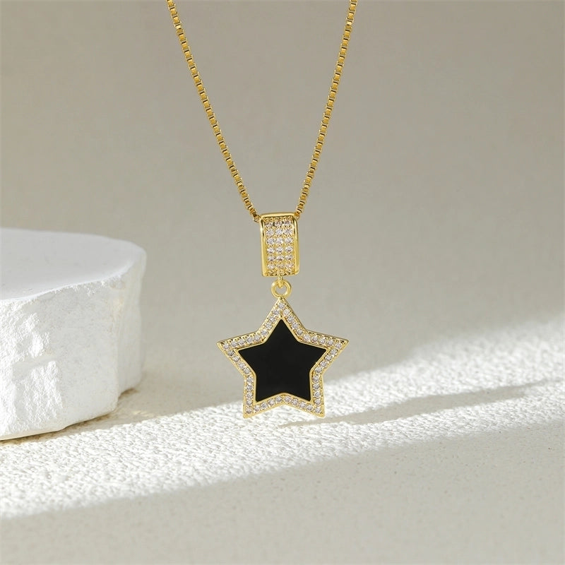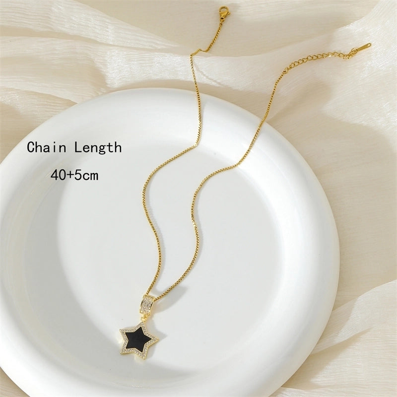 201 Stainless Steel Brass 18K Gold Plated Inlay Pentagram Shell Zircon Pendant Necklace