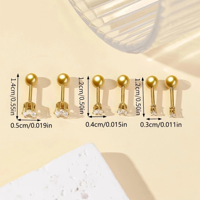 3 Pairs Minimalist Classic Style Geometric 304 Stainless Steel 18K Gold Plated Cartilage Earrings