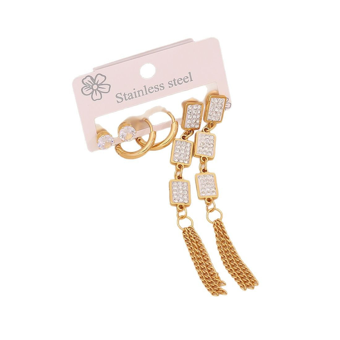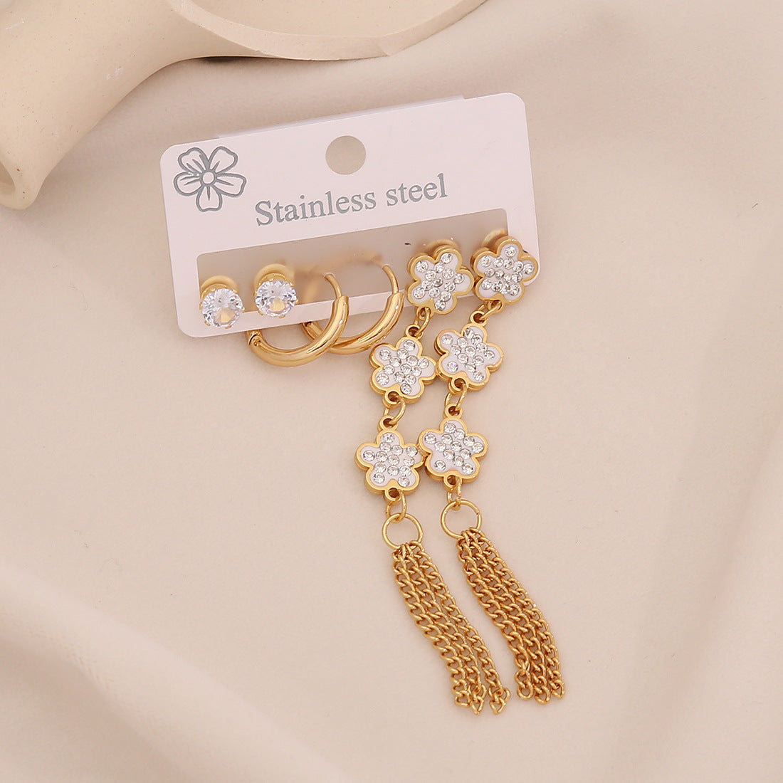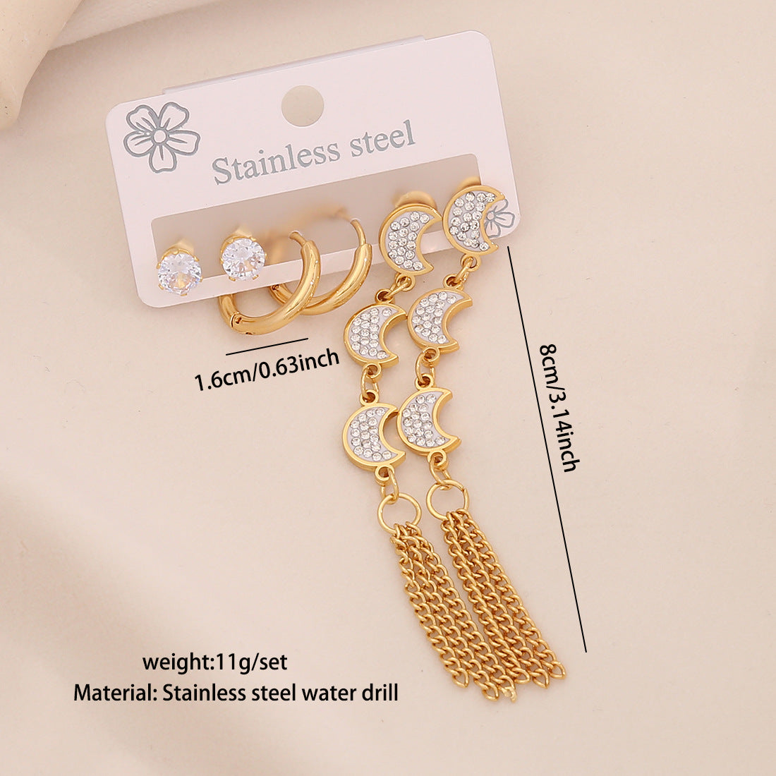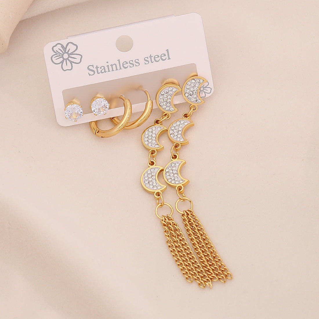 3 Pairs Of Flower Tassel Earrings Meet The Water Drop Moon Stainless Steel Earrings All-Match Earrings E606