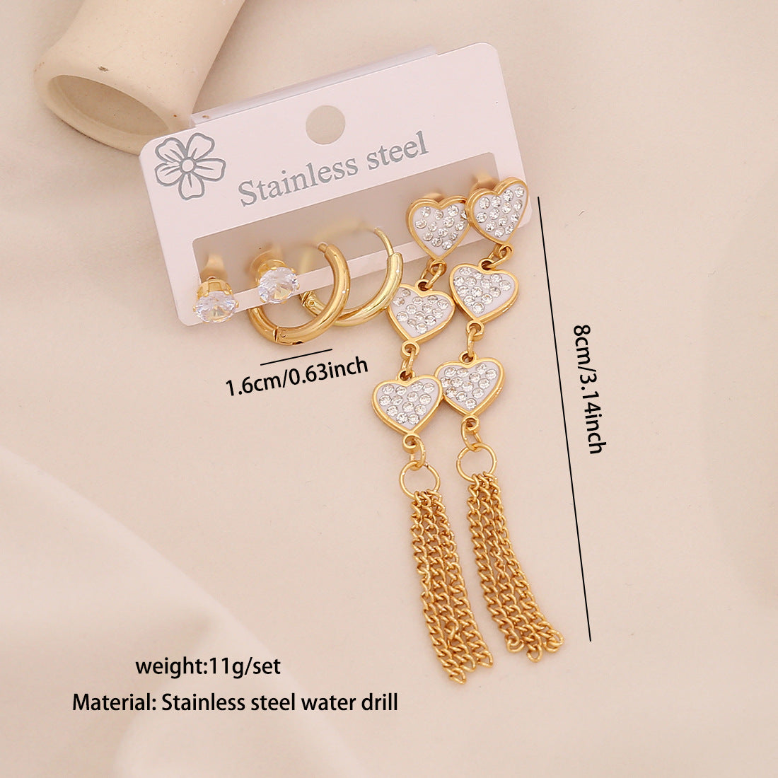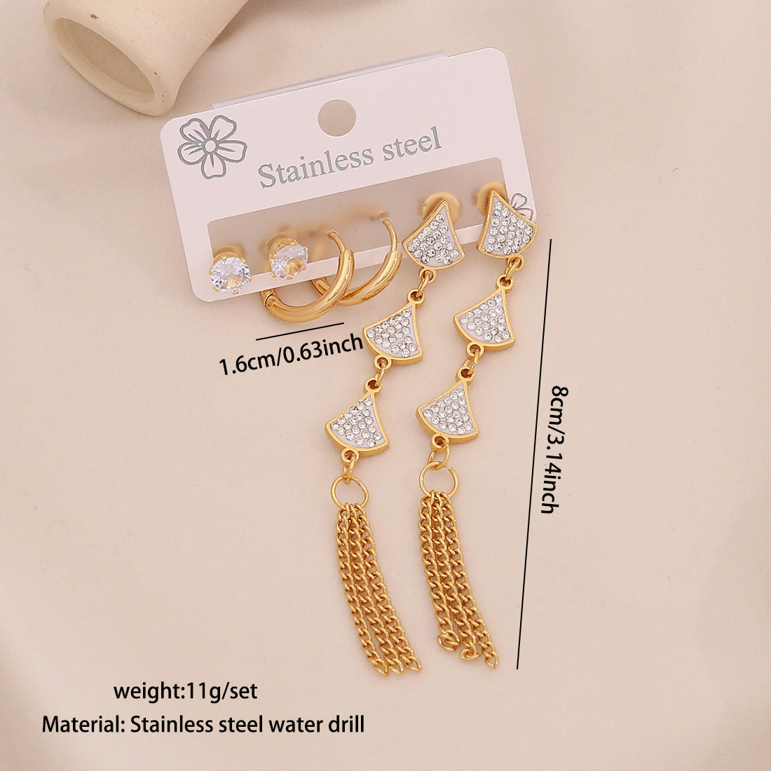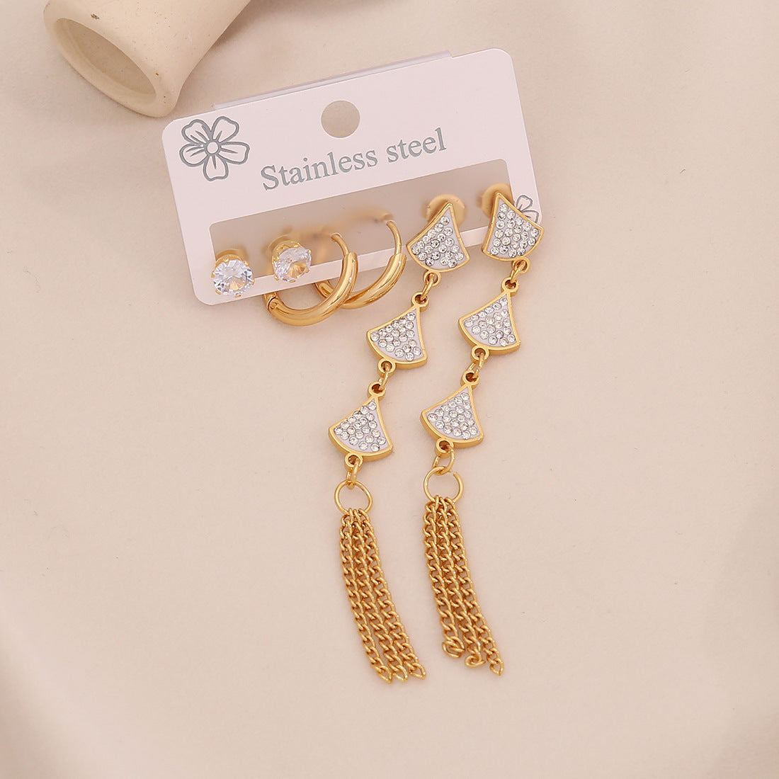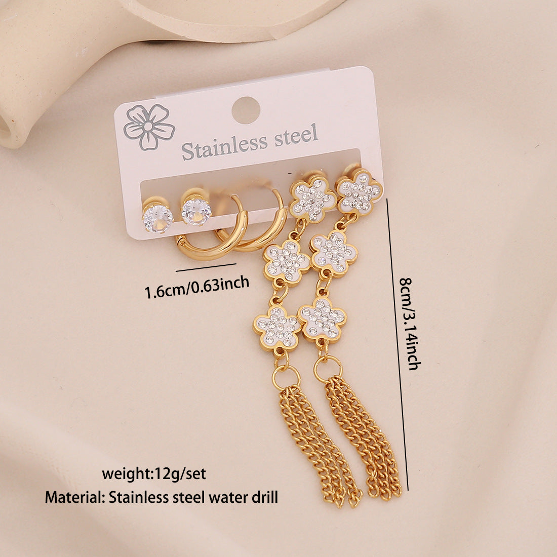 3 Pairs Of Flower Tassel Earrings Meet The Water Drop Moon Stainless Steel Earrings All-Match Earrings E606