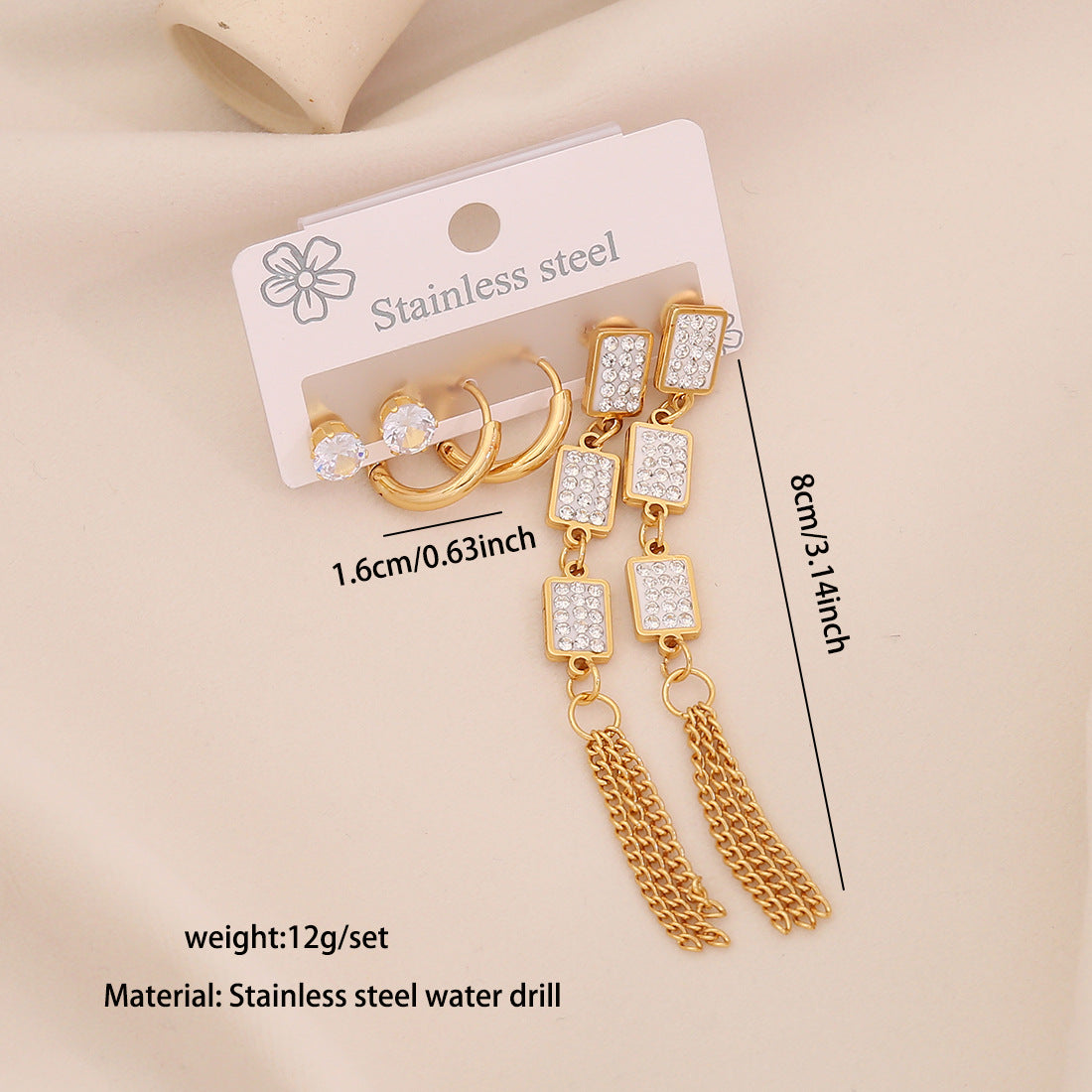Be the first to review “3 Pairs Of Flower Tassel Earrings Meet The Water Drop Moon Stainless Steel Earrings All-Match Earrings E606” Cancel reply