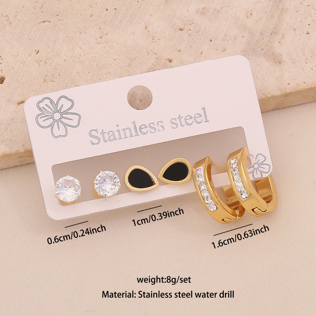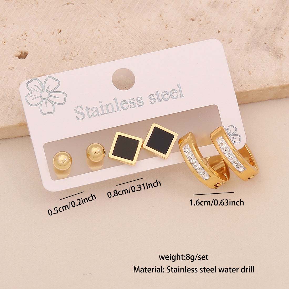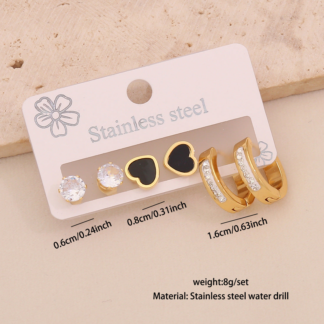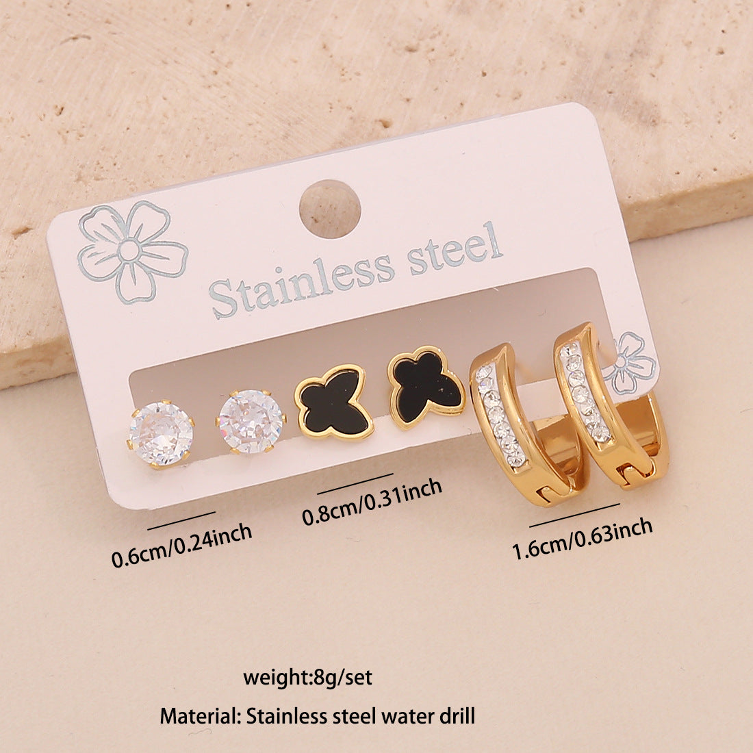 3 Pairs Of Love Flower Stainless Steel Earrings Geometric Square Water Drop Earrings E613