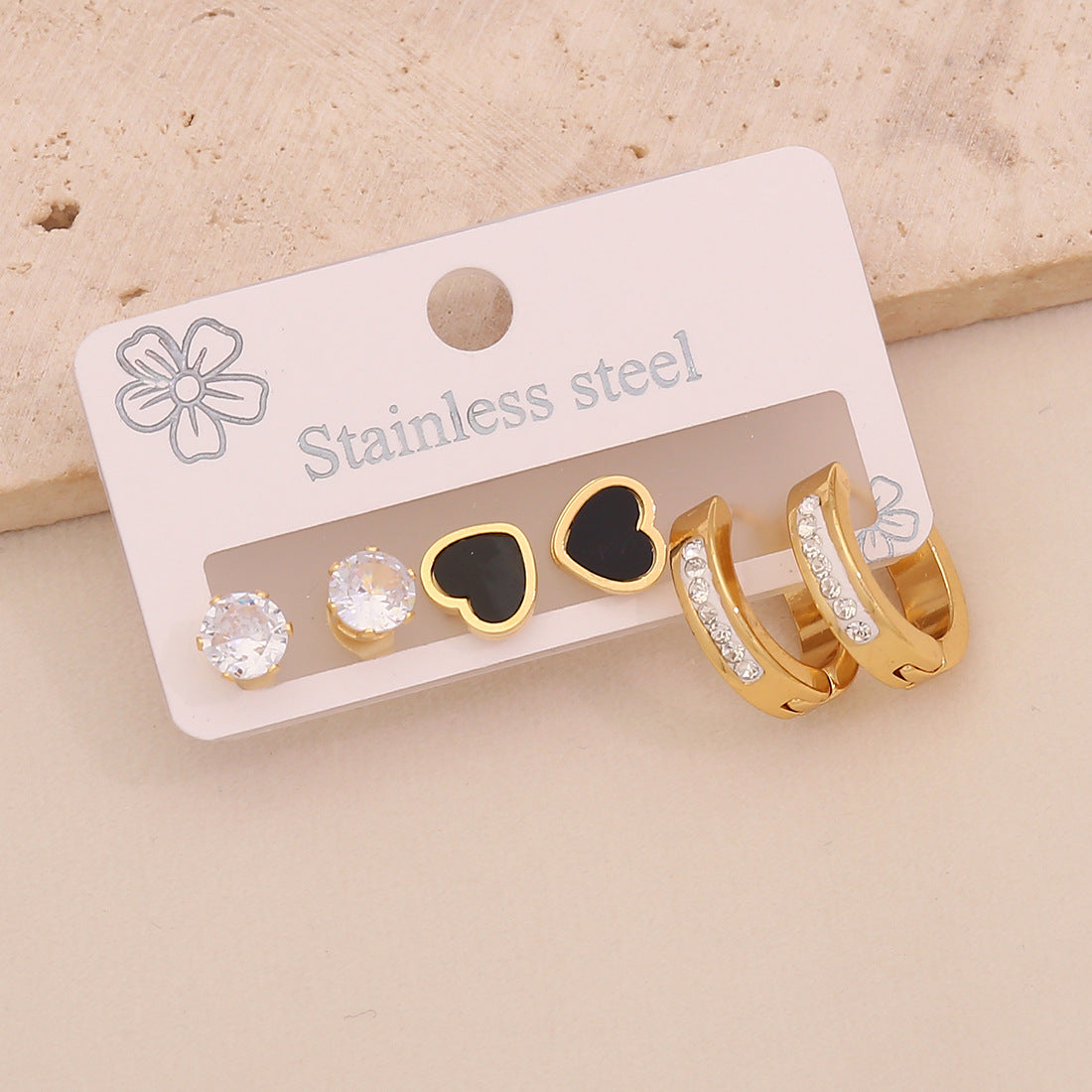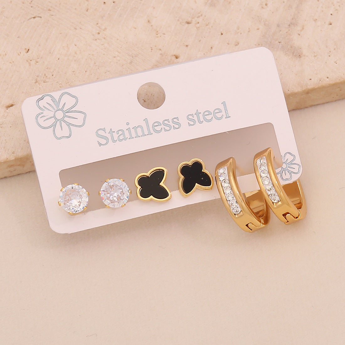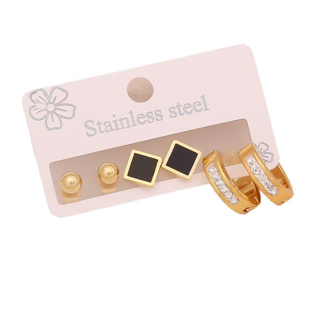 3 Pairs Of Love Flower Stainless Steel Earrings Geometric Square Water Drop Earrings E613