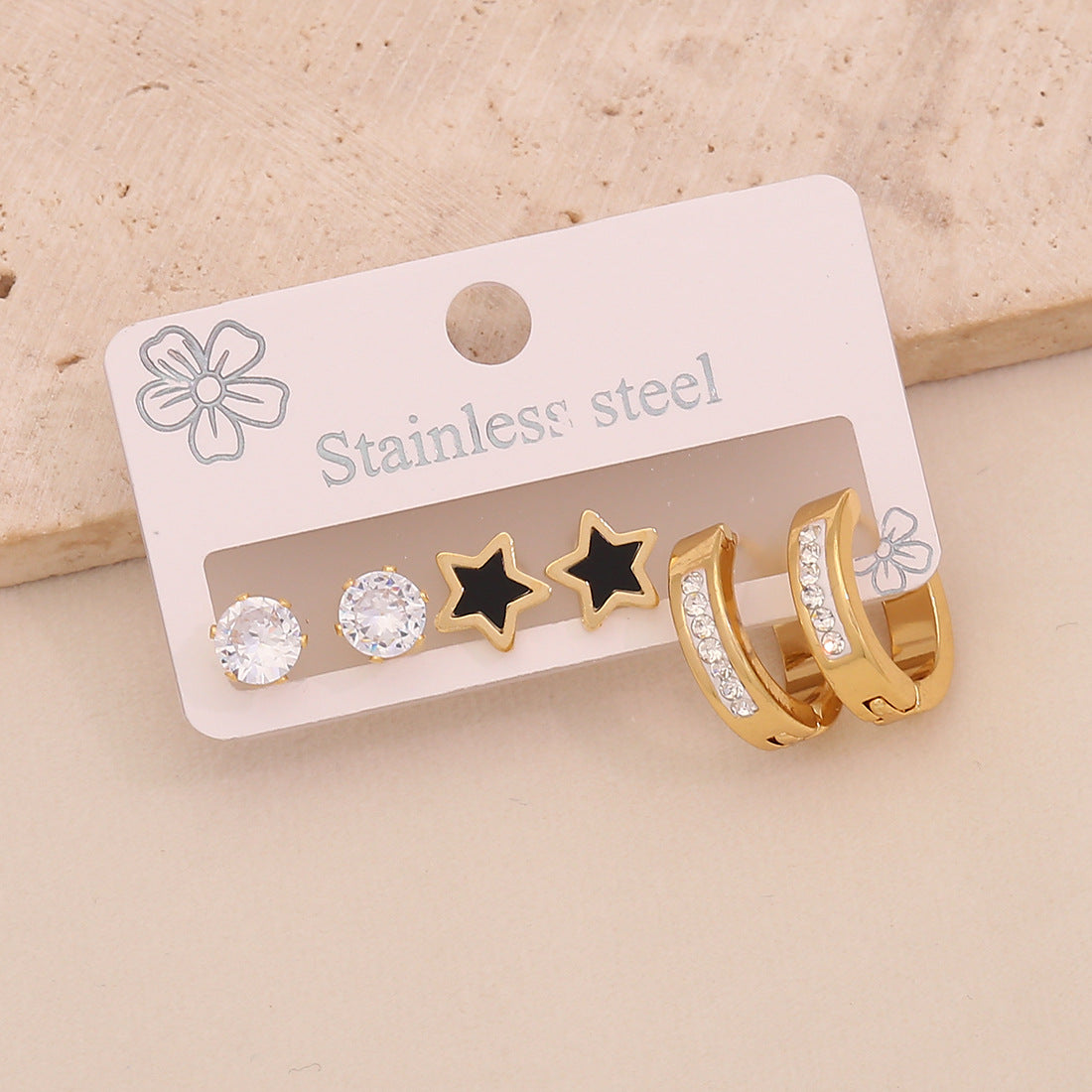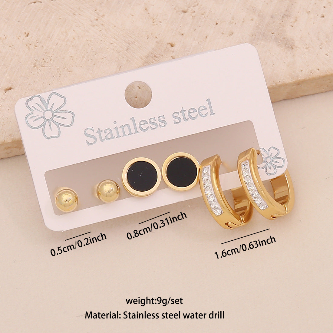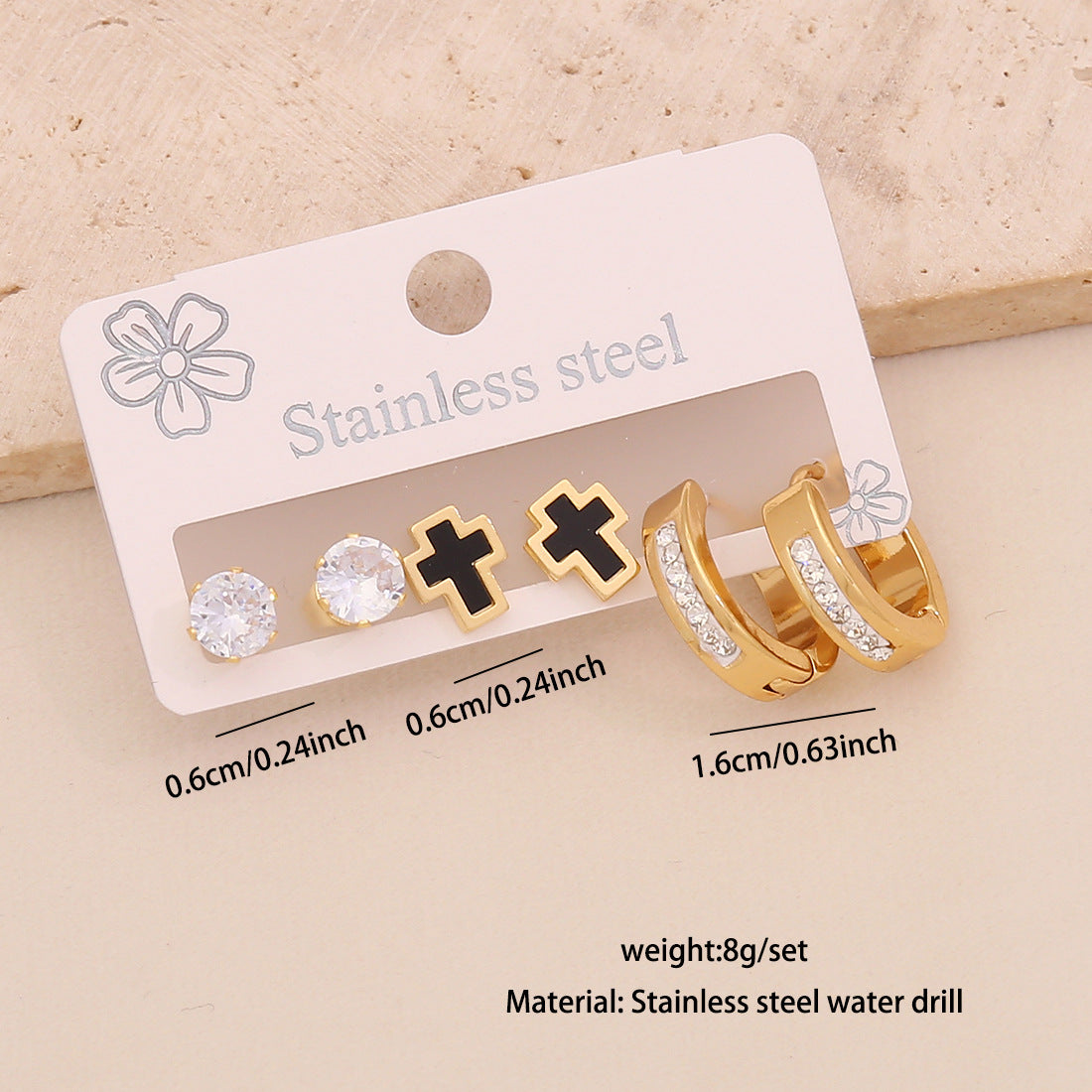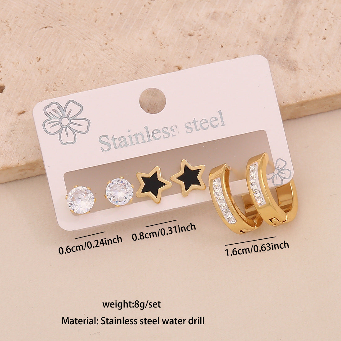 3 Pairs Of Love Flower Stainless Steel Earrings Geometric Square Water Drop Earrings E613