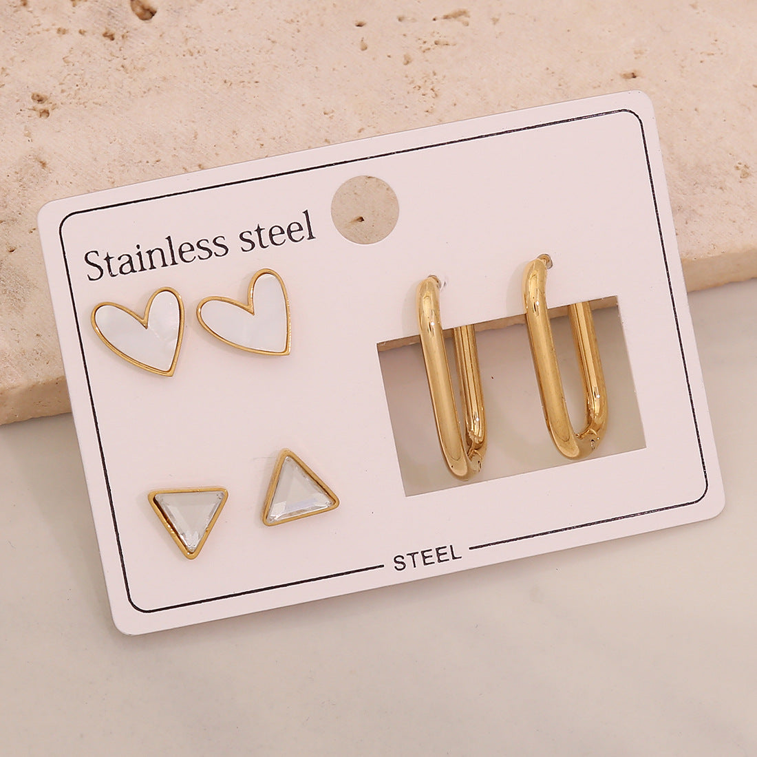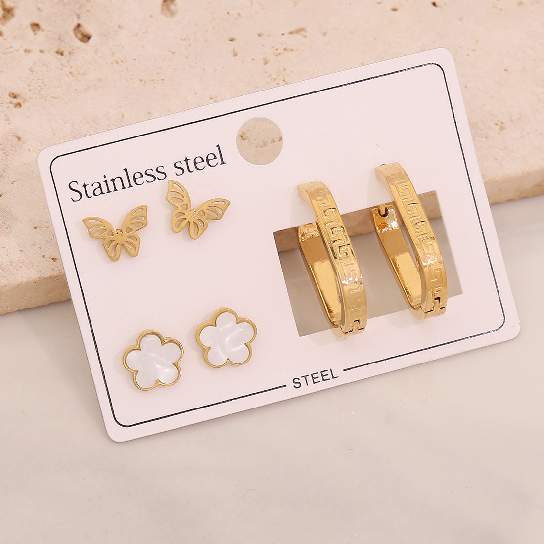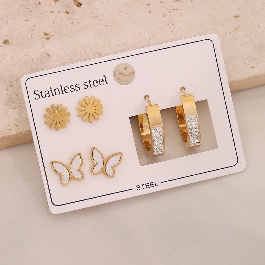 3 Pairs Of Love Starfish Stainless Steel All-Match Earrings Butterfly Flower Earrings E601