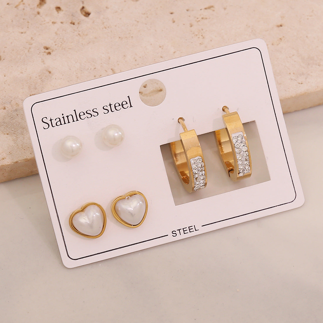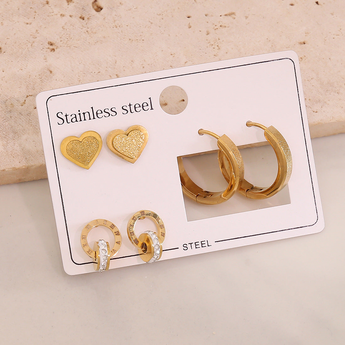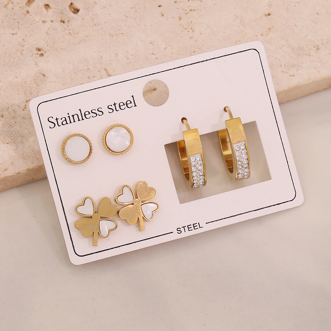 3 Pairs Of Love Starfish Stainless Steel All-Match Earrings Butterfly Flower Earrings E601