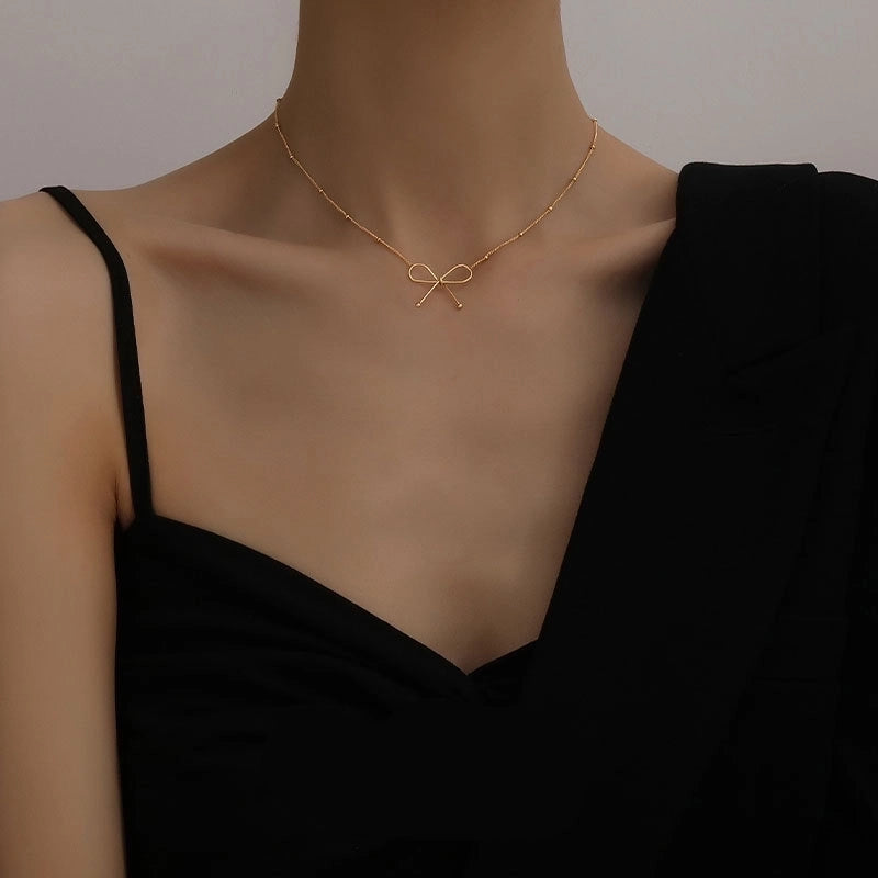 304 Stainless Steel 18K Gold Plated Minimalist Plating Bow Knot Pendant Necklace