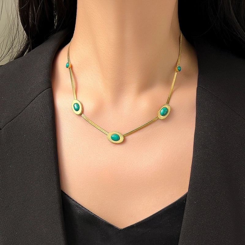 304 Stainless Steel 18K Gold Plated Retro Inlay Oval Resin Necklace