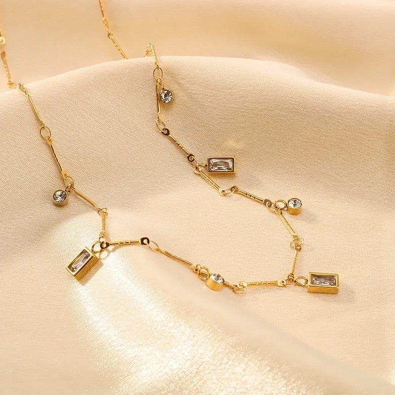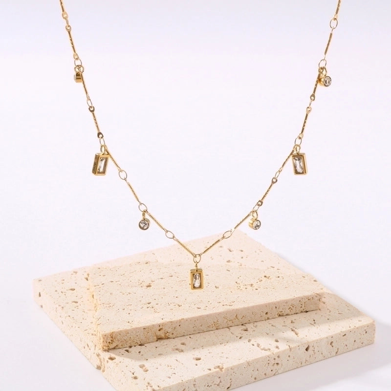 Be the first to review “304 Stainless Steel 18K Gold Plated Romantic Minimalist Shiny Inlay Round Rectangle Zircon Necklace” Cancel reply