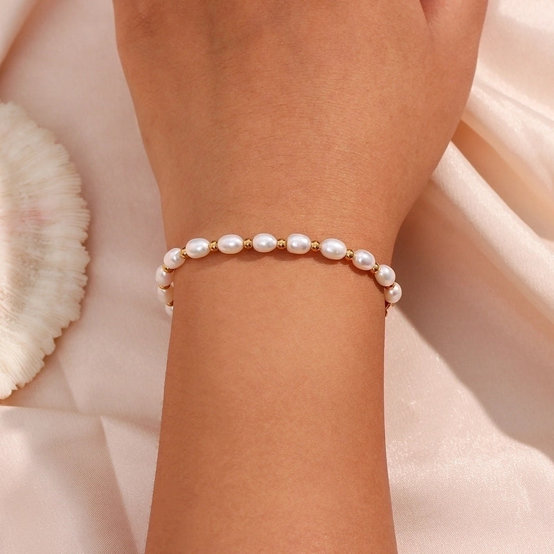 304 Stainless Steel Freshwater Pearl 18K Gold Plated Basic Minimalist Classic Style Plating Round Bracelets
