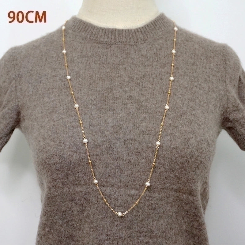 304 Stainless Steel Freshwater Pearl Titanium Steel Gold Plated Minimalist Classic Style Beaded Plating Round Sweater Chain Long Necklace
