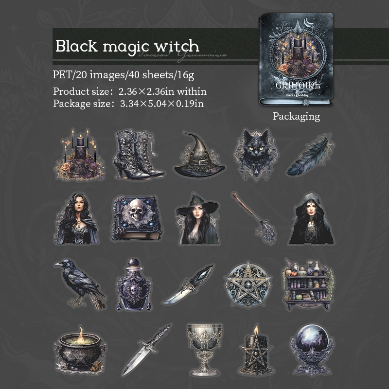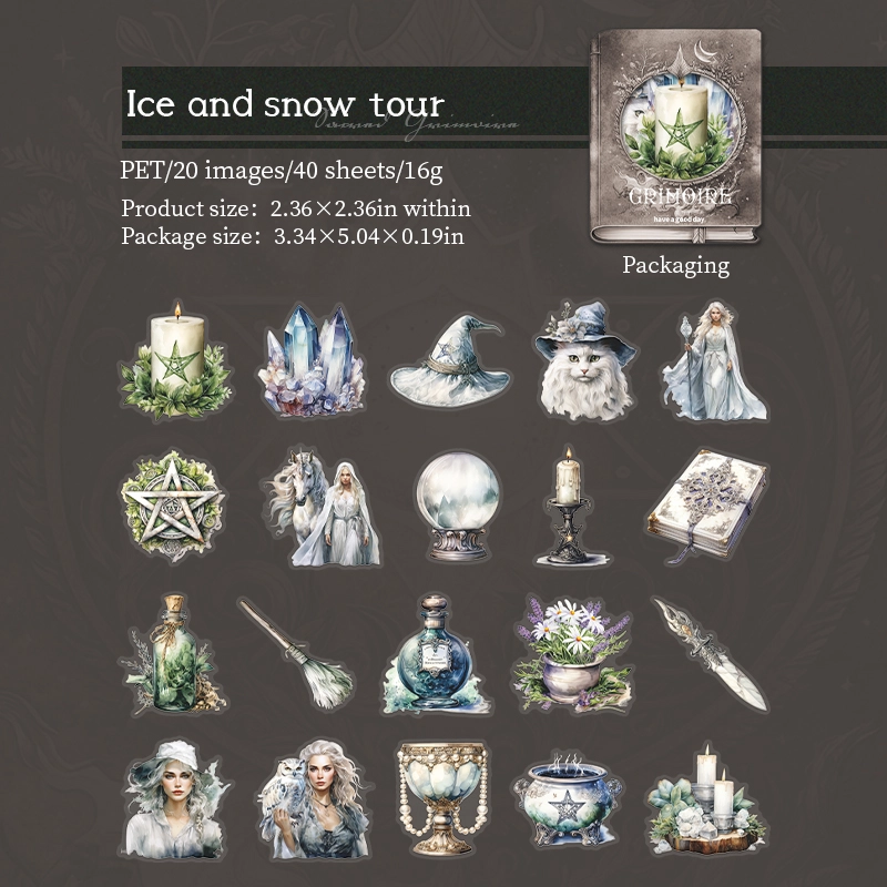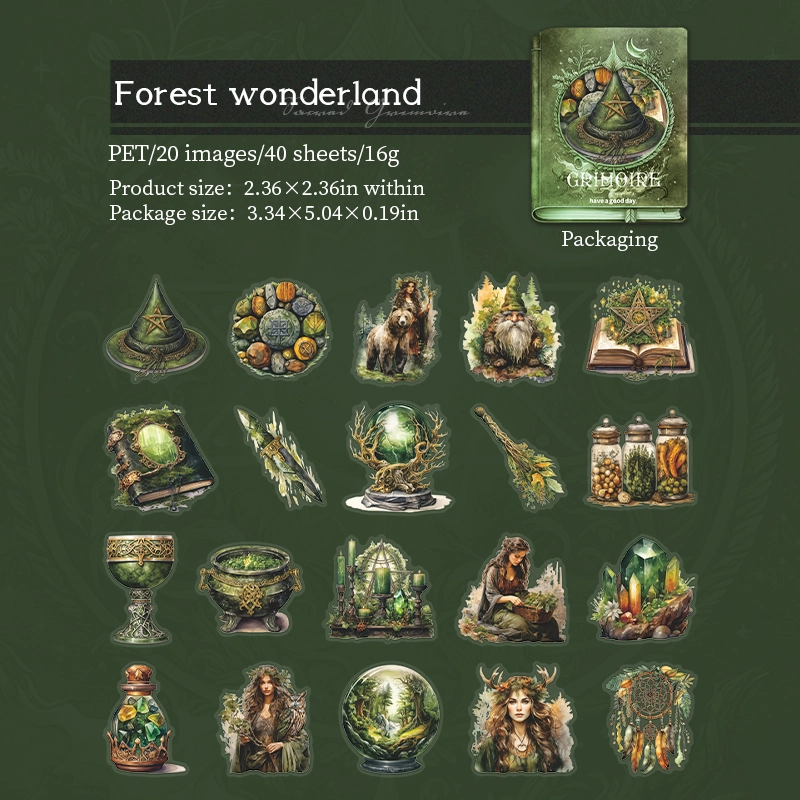 40 Sheets Per Pack Cartoon Character Hat Magic Wand Learning School PET Nordic Style Retro Stickers