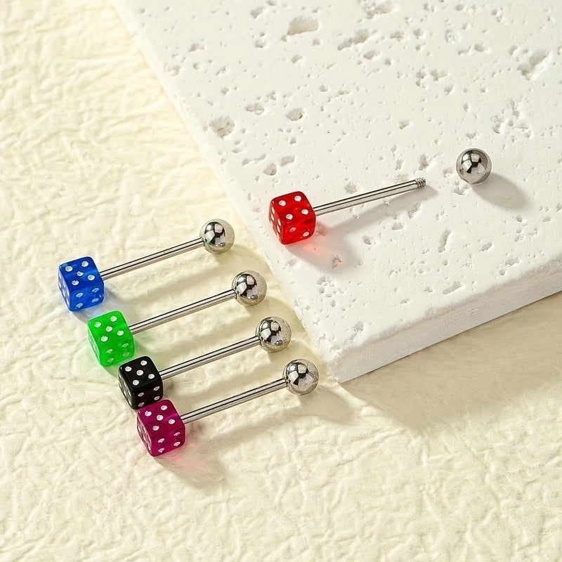 5 Pieces Tongue Rings Gothic Punk Dice 316L Stainless Steel Arylic Tongue Rings