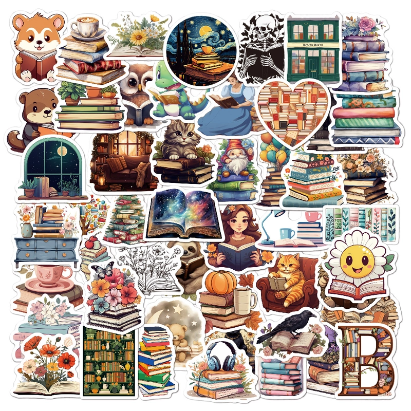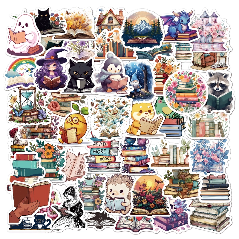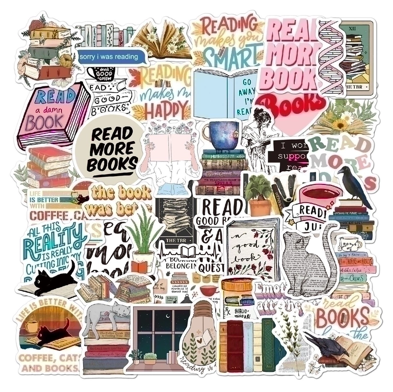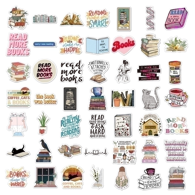 3 Pieces 50 Books Reading Graffiti Stickers Cartoon Minimalist Children’s Stickers Diy Luggage Scooter Stickers Waterproof