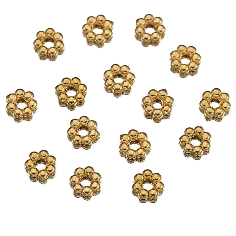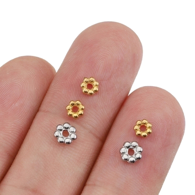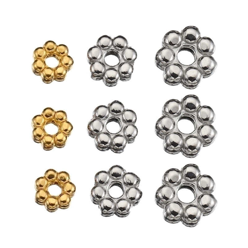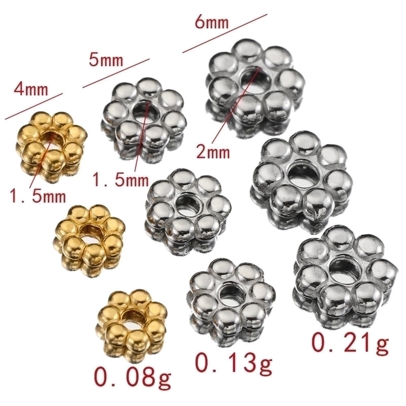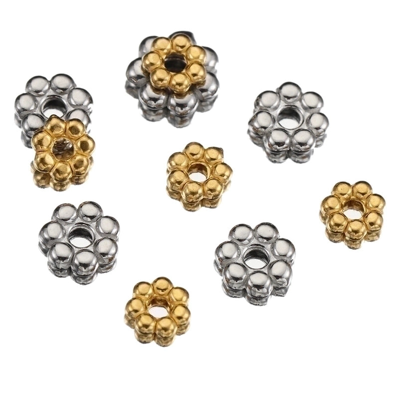 50 PCS/Package Diameter 4mm Diameter 5mm Diameter 6 Mm Hole 1~1.9mm Hole 2~2.9mm 304 Stainless Steel 18K Gold Plated Flower Polished Spacer Bars