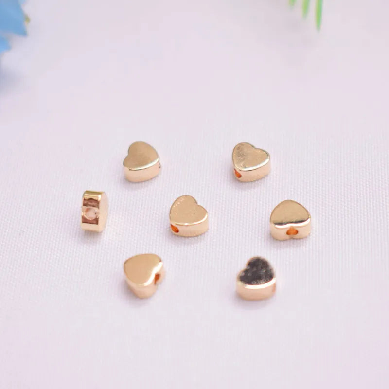 50 PCS/Package Diameter 5mm Diameter 6 Mm Diameter 7 Mm Hole 1~1.9mm Copper 14K Gold Plated 18K Gold Plated Heart Shape Polished Beads