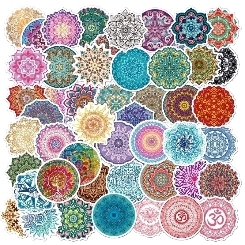 50 Sheets / 1 Package Mandala Yoga Pattern Round Decorative Stickers