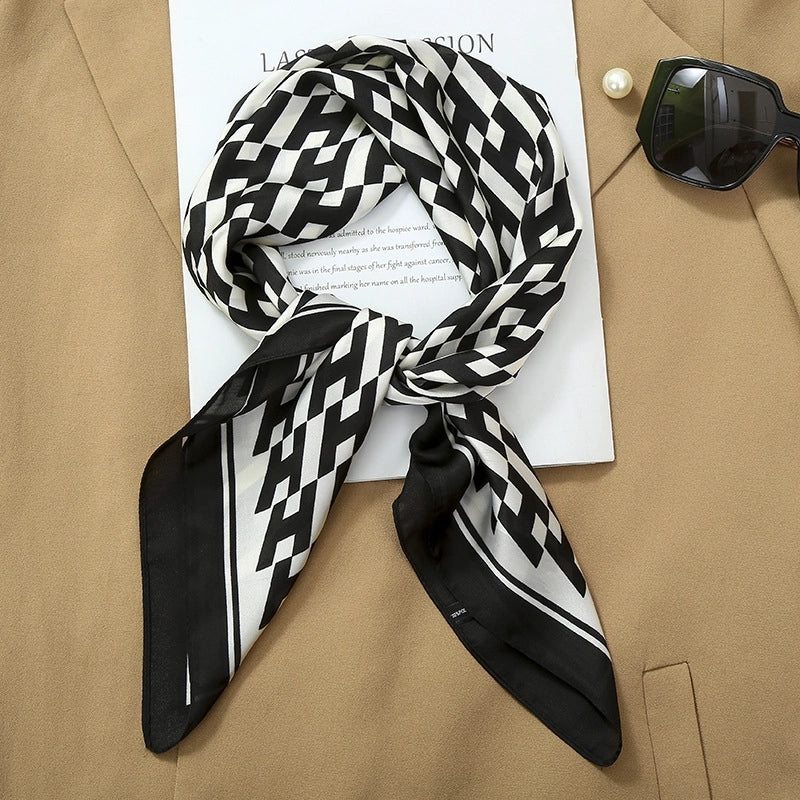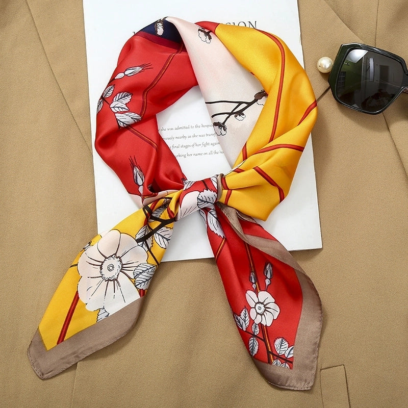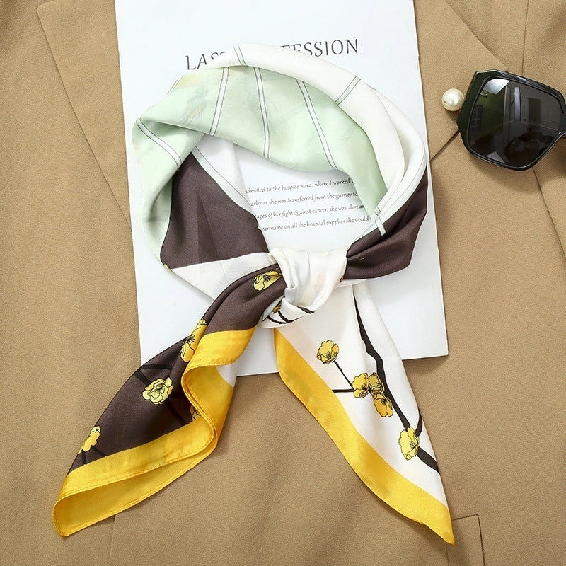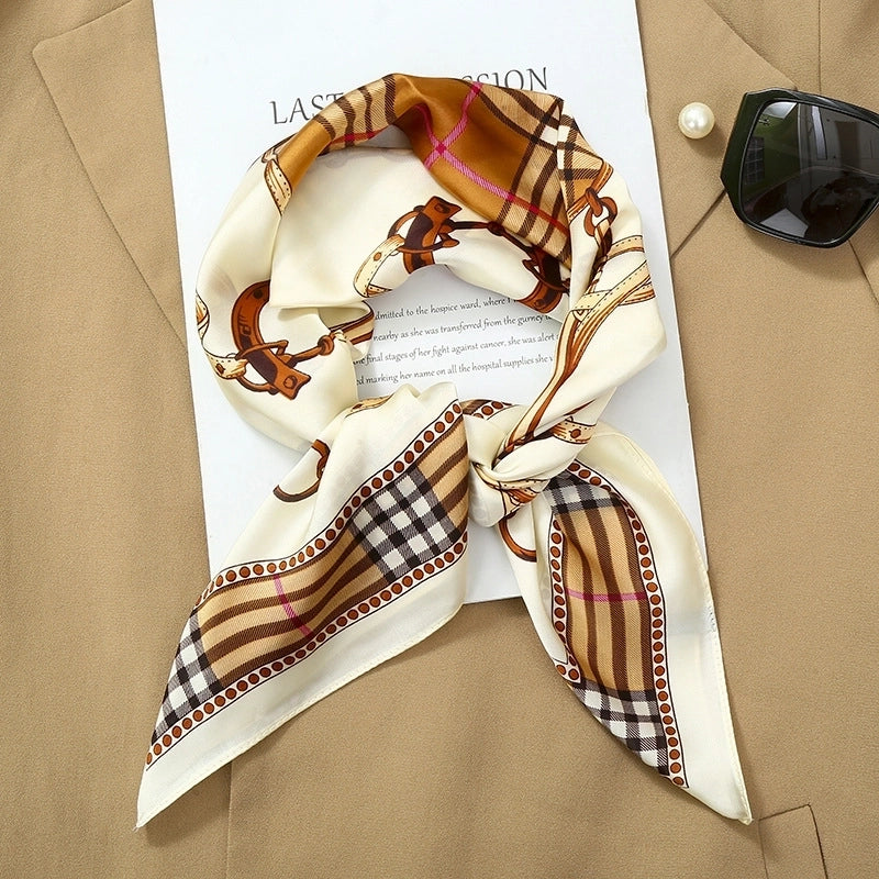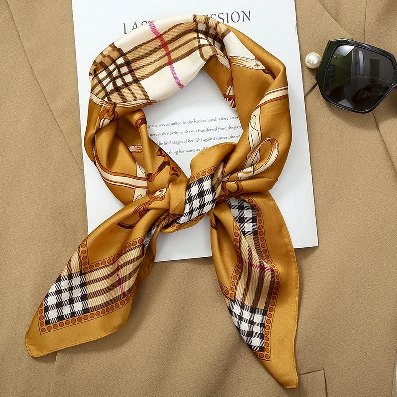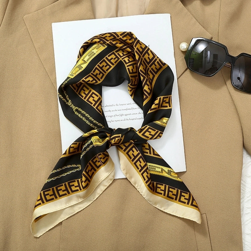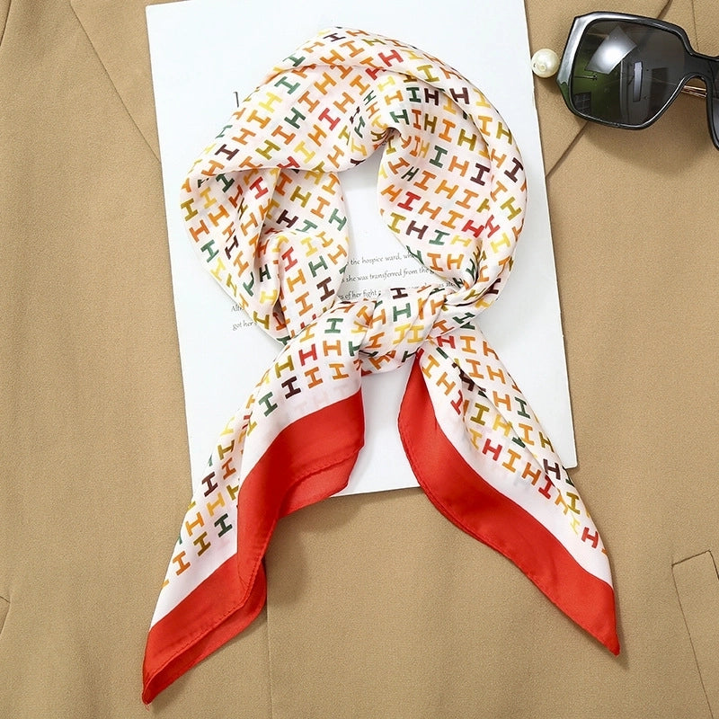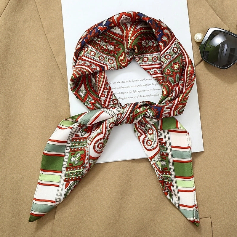 70*70 Striped Silk Scarf Women’s Small Square Scarf Korean Style Versatile Professional Small Scarf Summer Thin Decorative Scarf