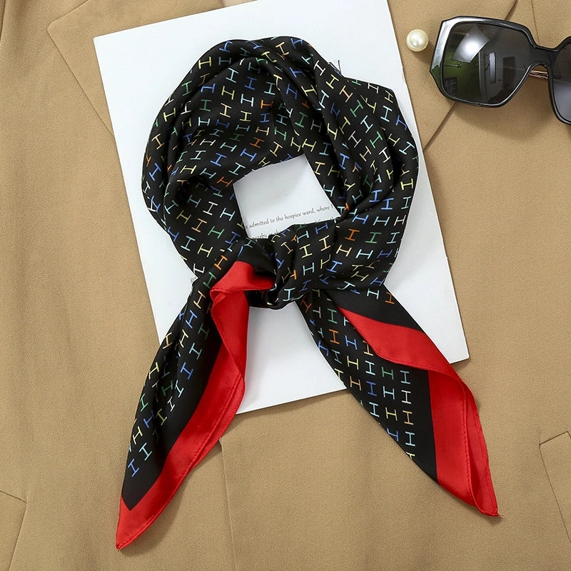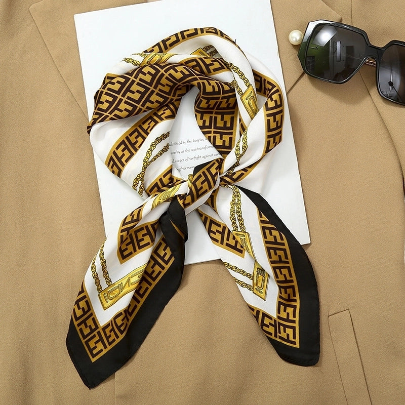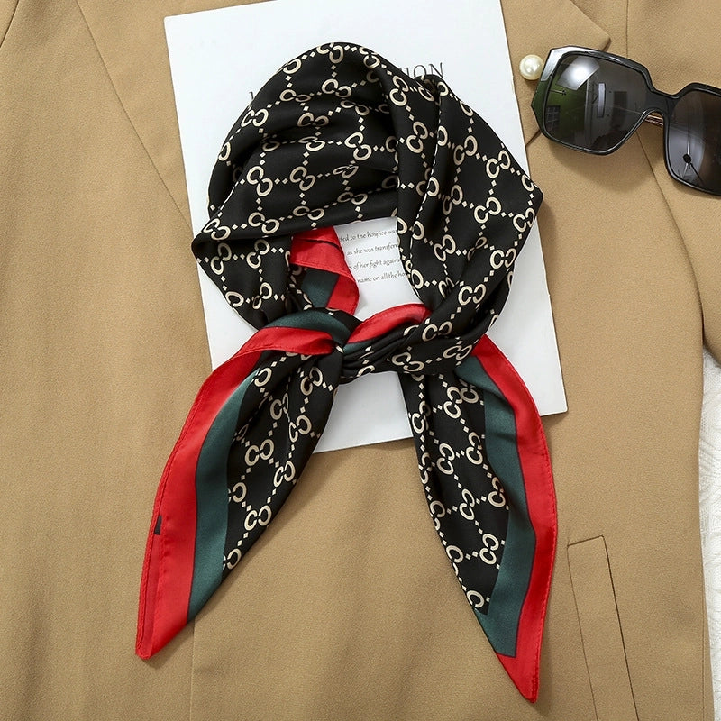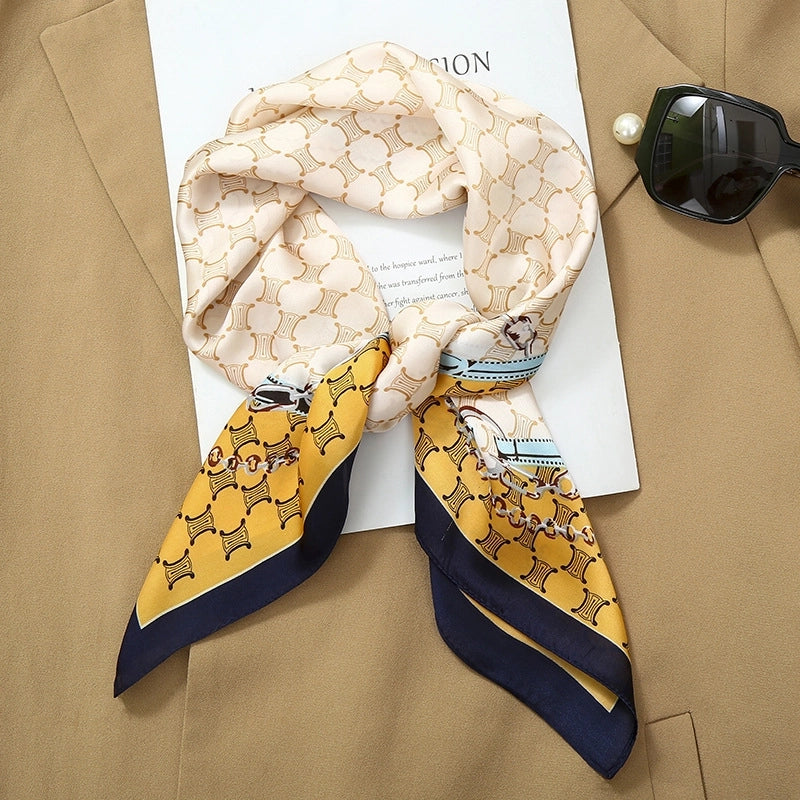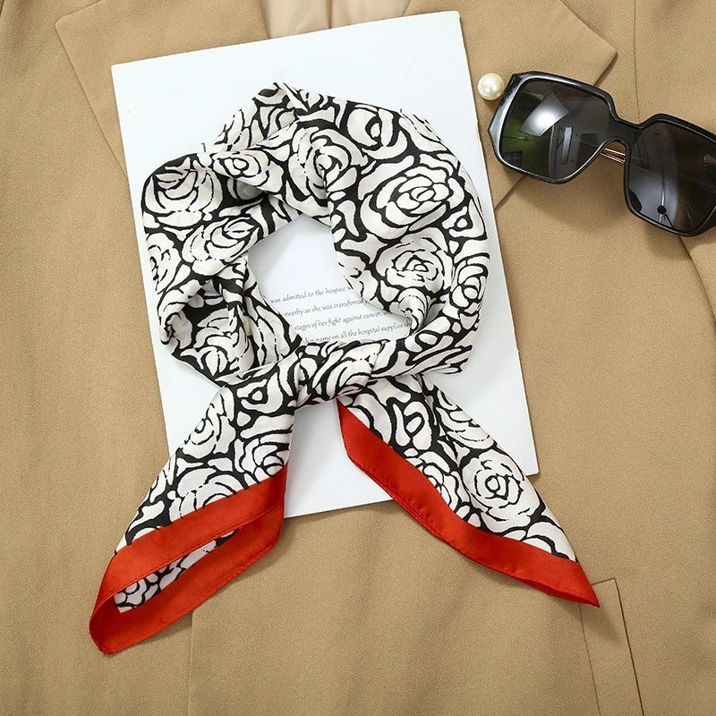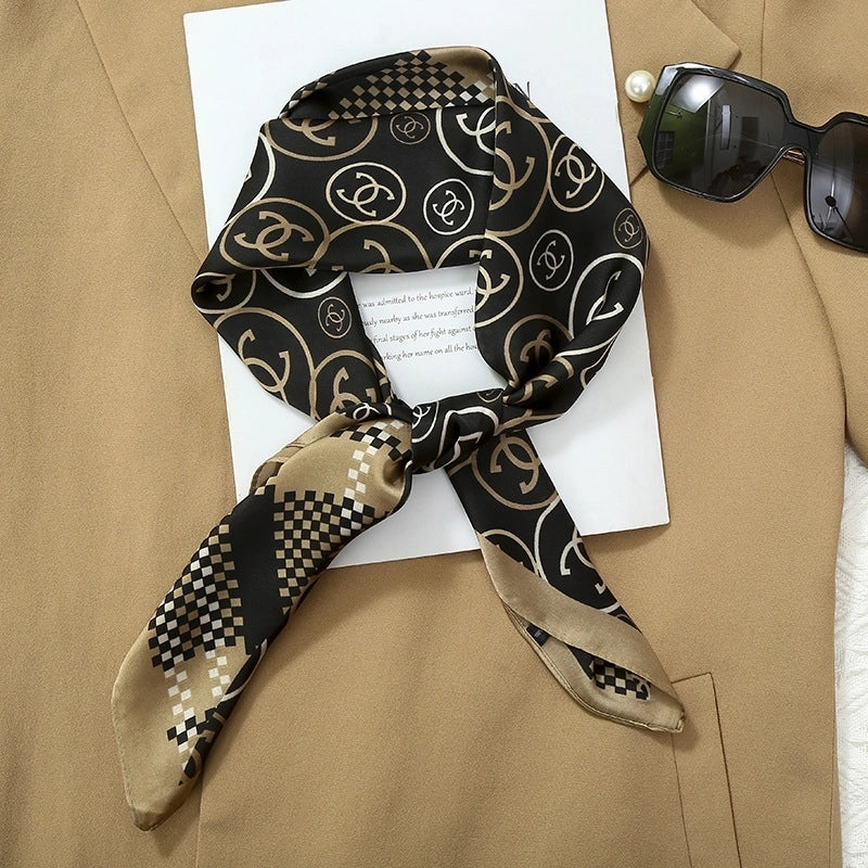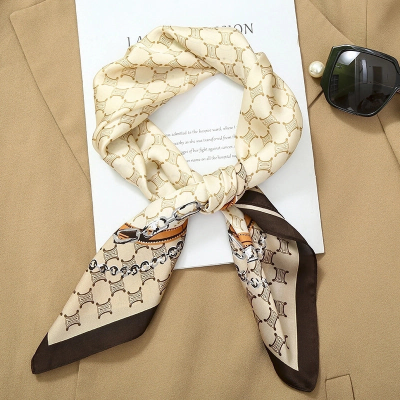 70*70 Striped Silk Scarf Women’s Small Square Scarf Korean Style Versatile Professional Small Scarf Summer Thin Decorative Scarf