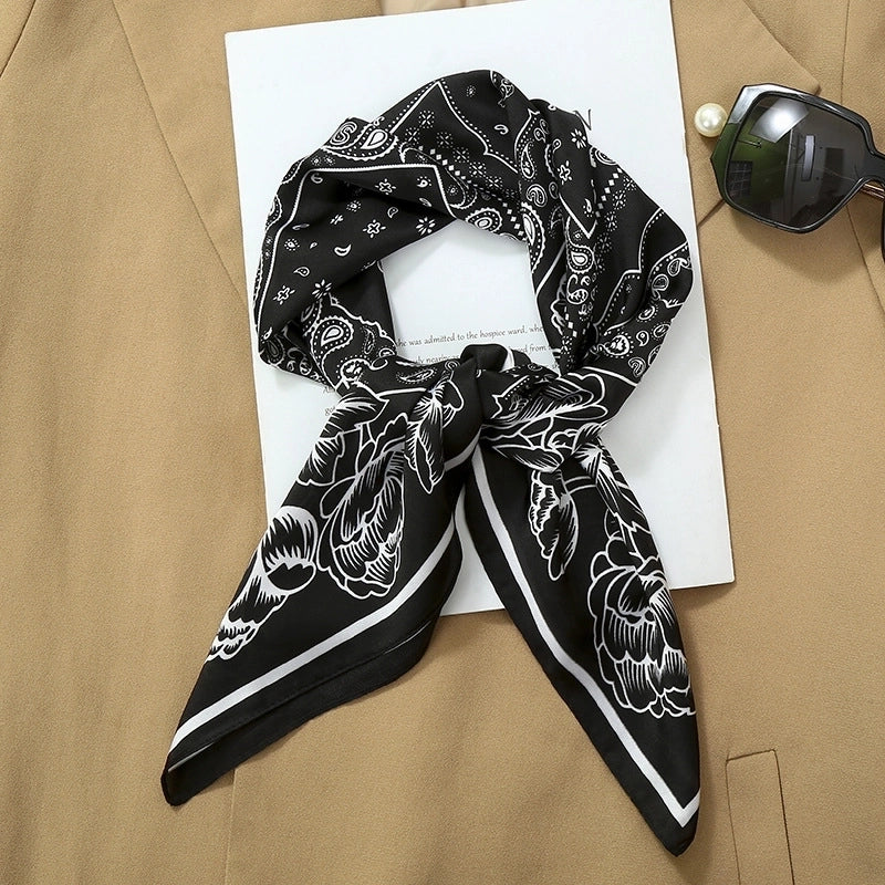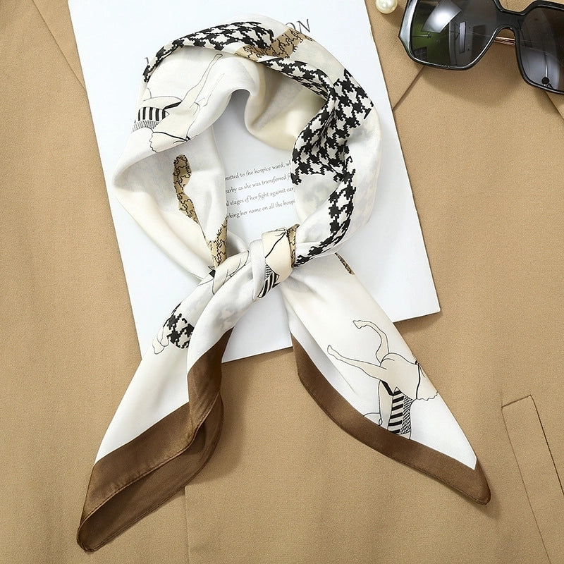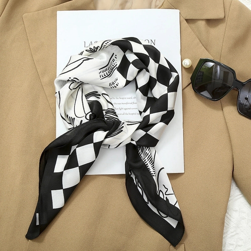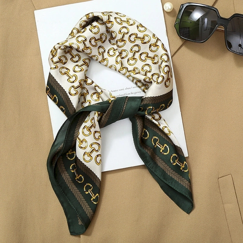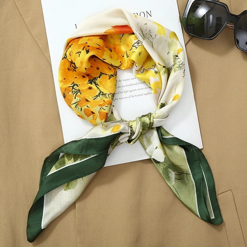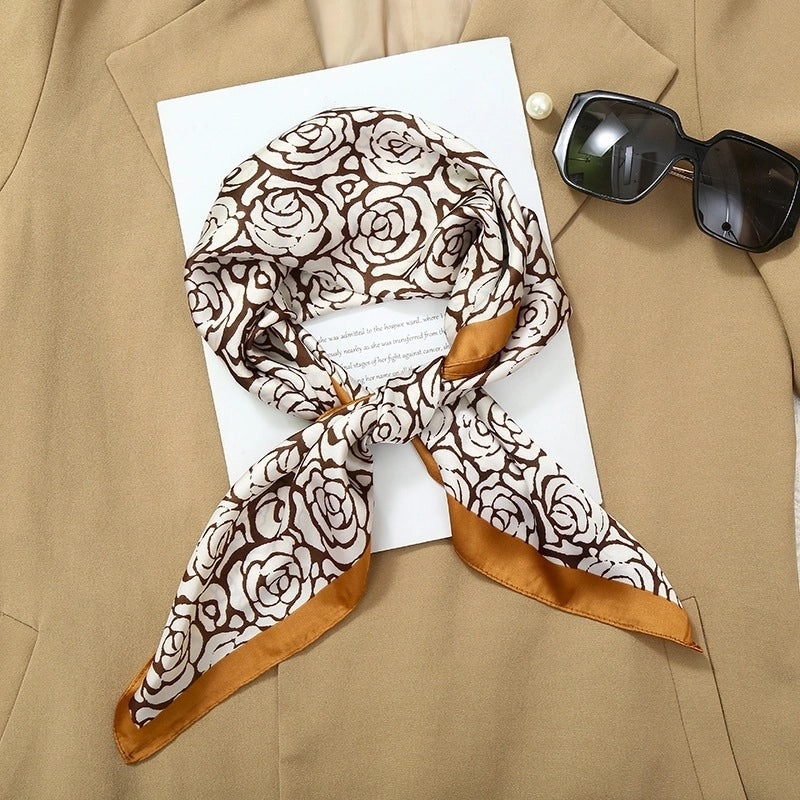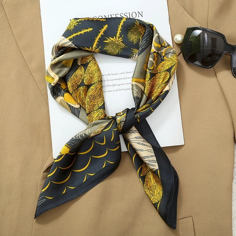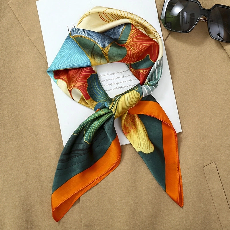 70*70 Striped Silk Scarf Women’s Small Square Scarf Korean Style Versatile Professional Small Scarf Summer Thin Decorative Scarf