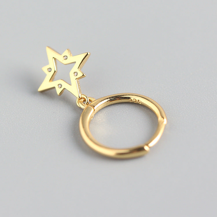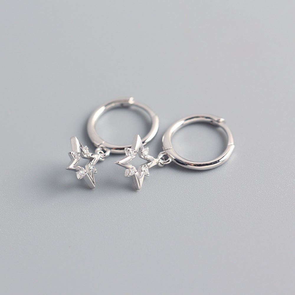 925 Sterling Silver Cute Star Silver Diamond Inlay Stud Earrings