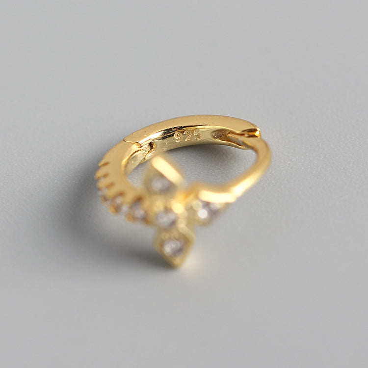 925 Sterling Silver Korean Amur adonis Silver Diamond Inlay Stud Earrings