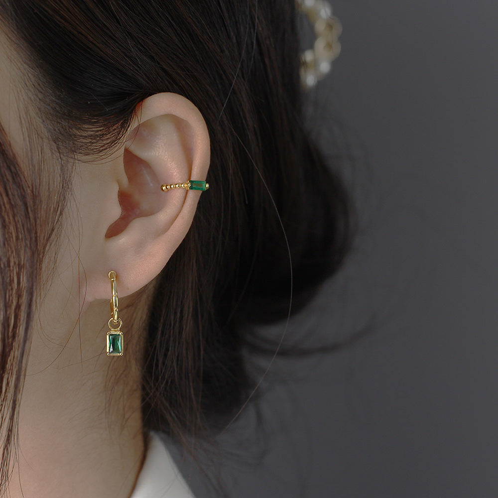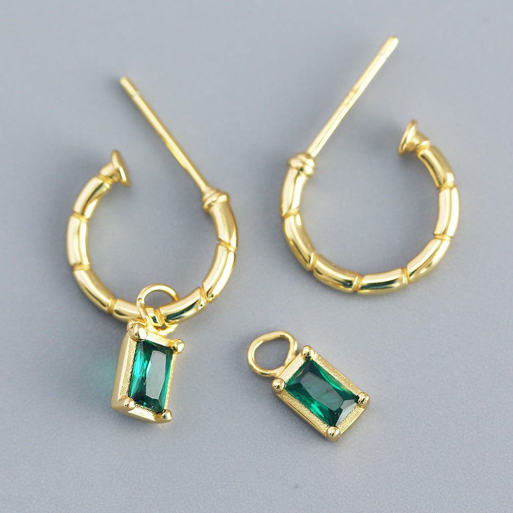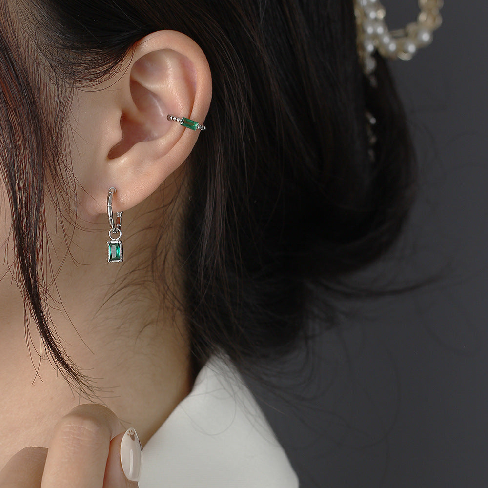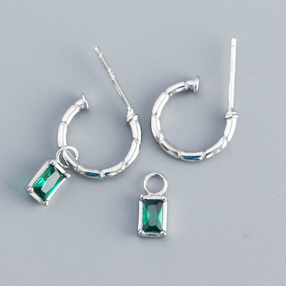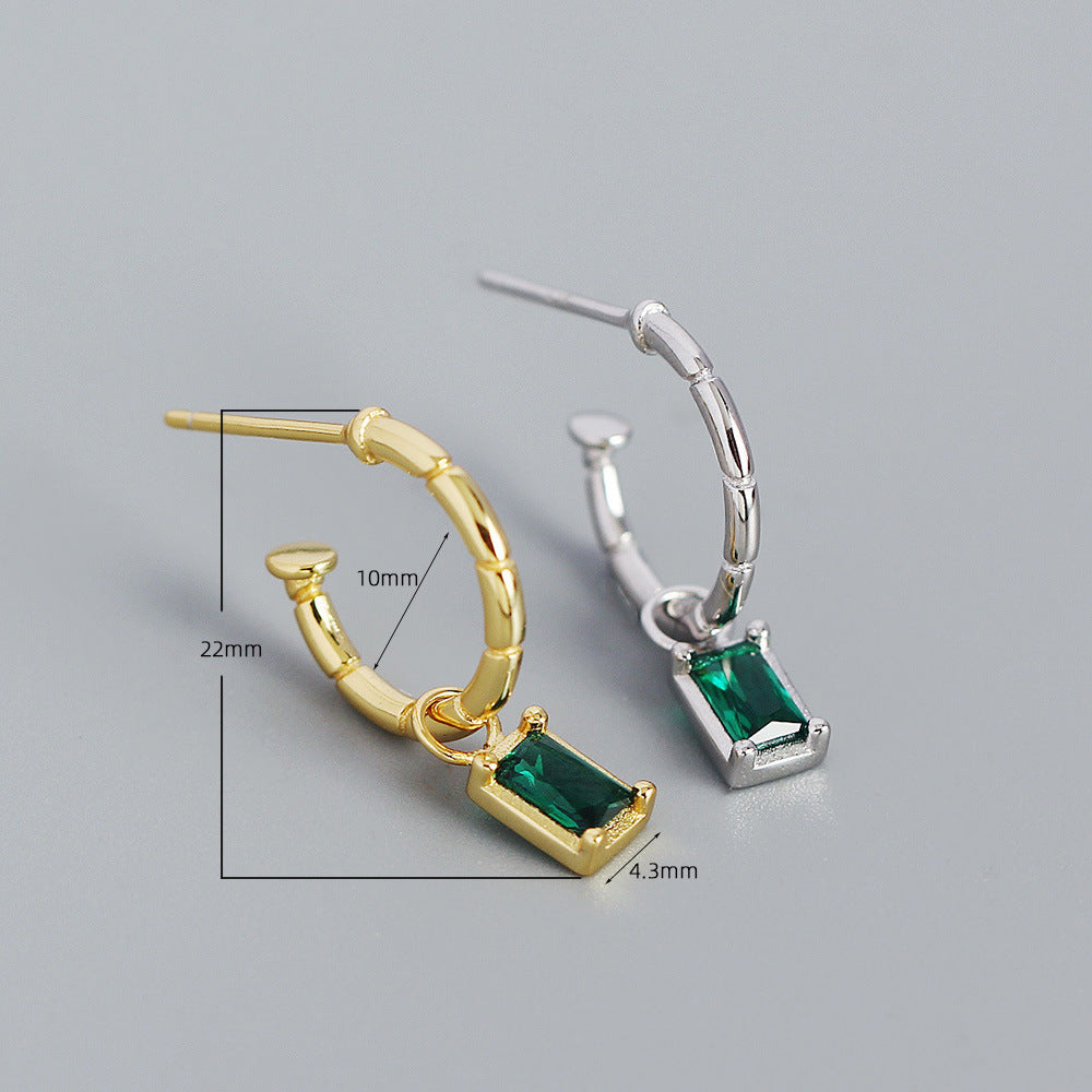 925 Sterling Silver Luxurious Circle Quadrilateral Silver Diamond Inlay Stud Earrings