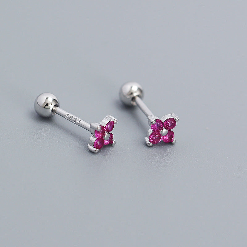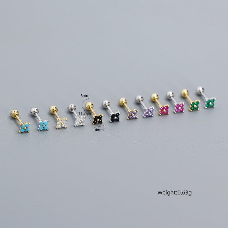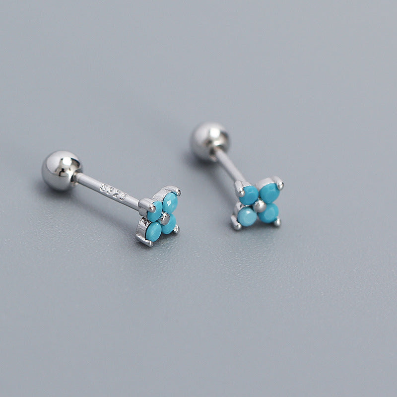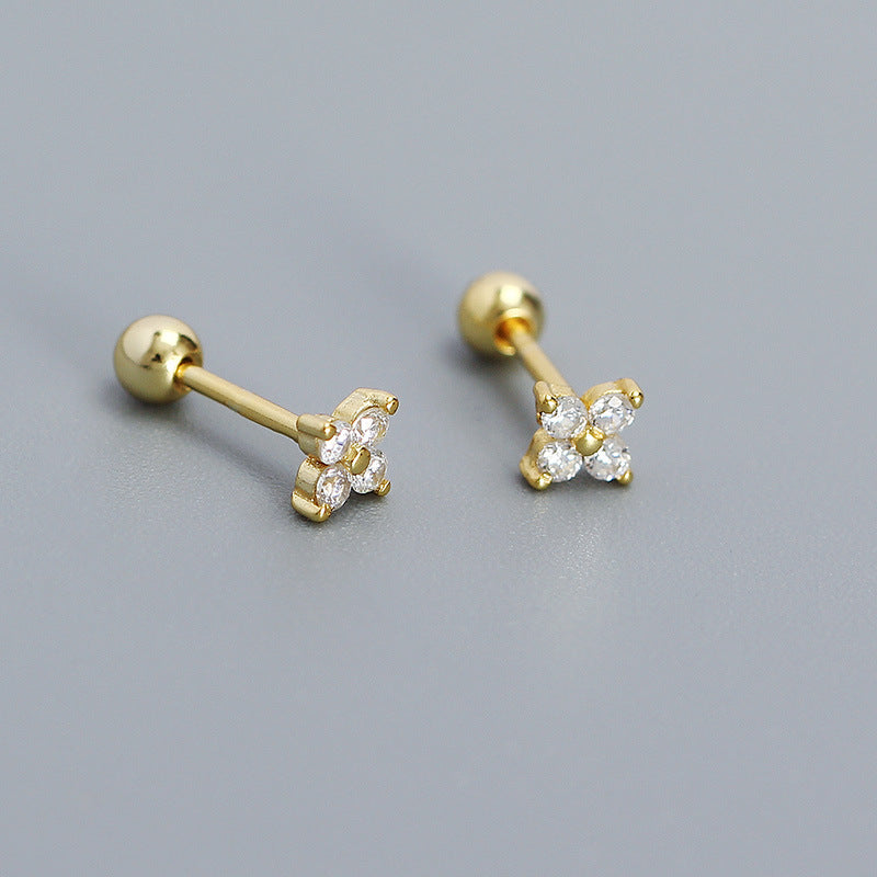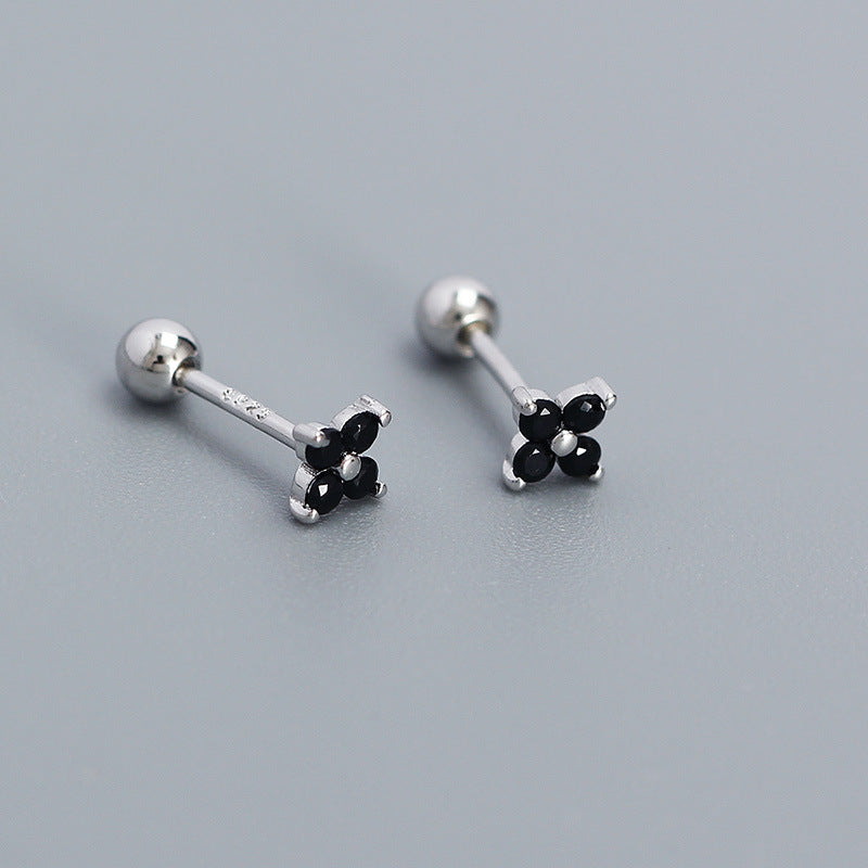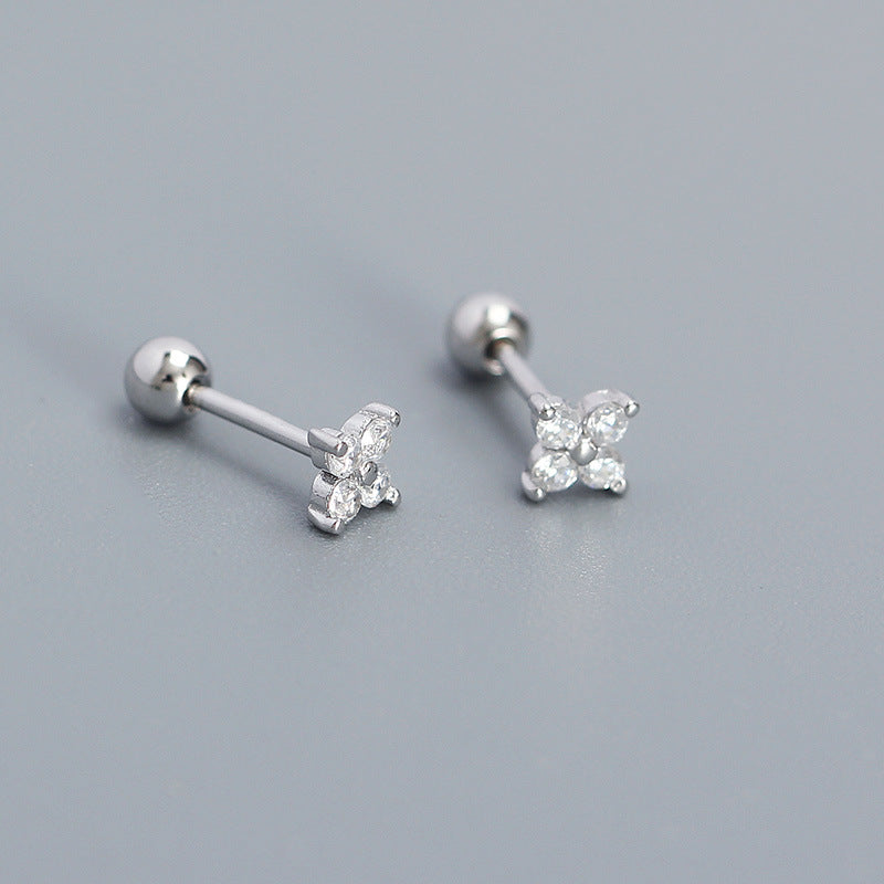 925 Sterling Silver Minimalist Flower Flower Silver Diamond Inlay Stud Earrings