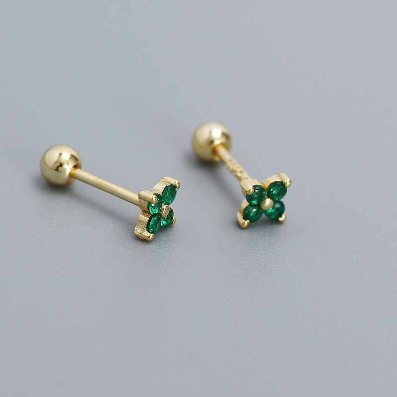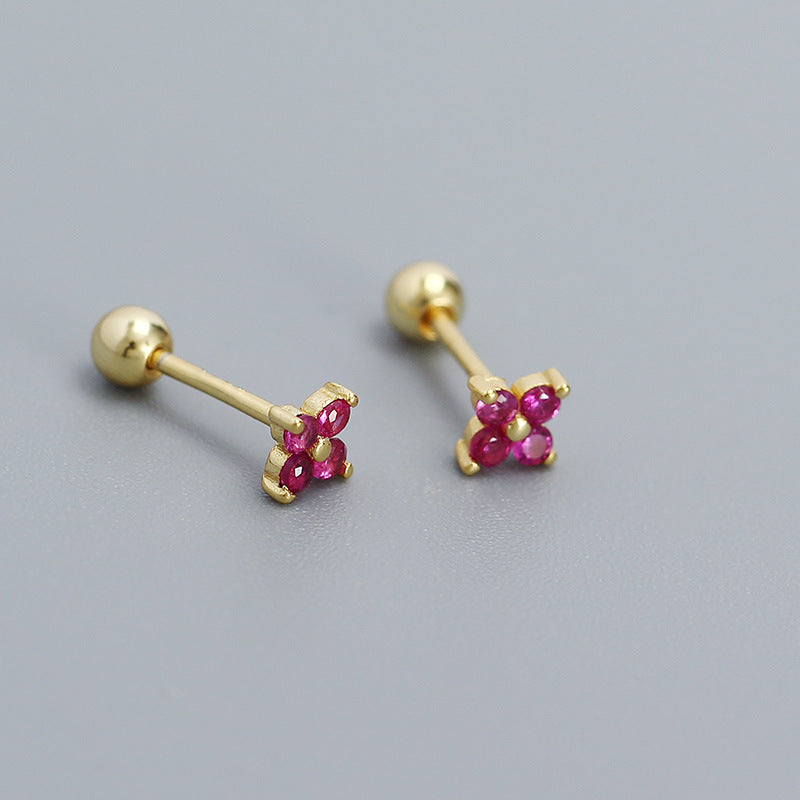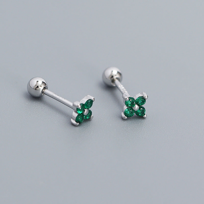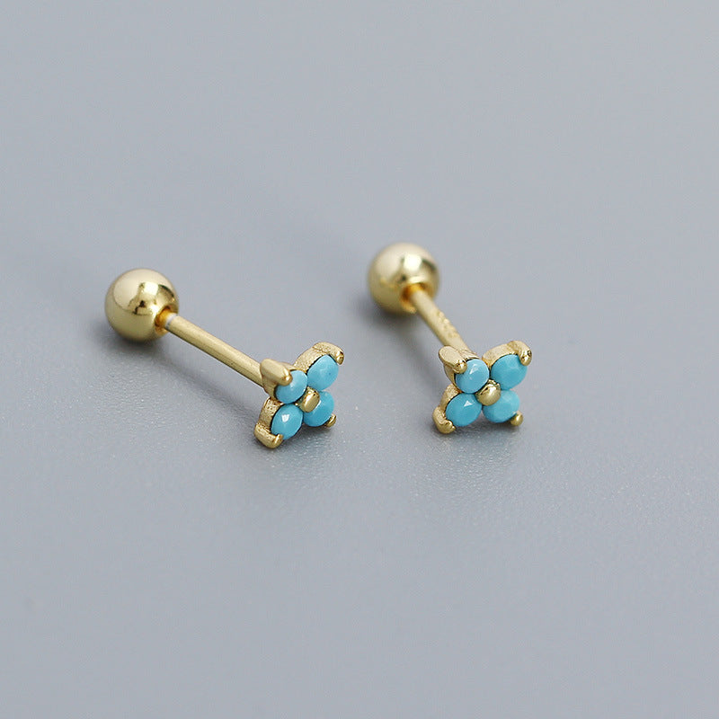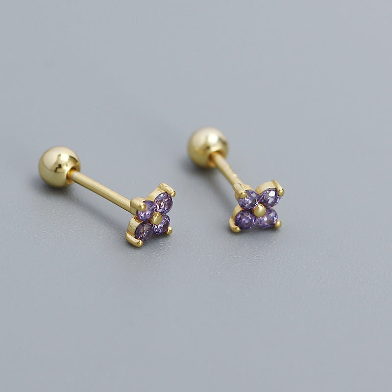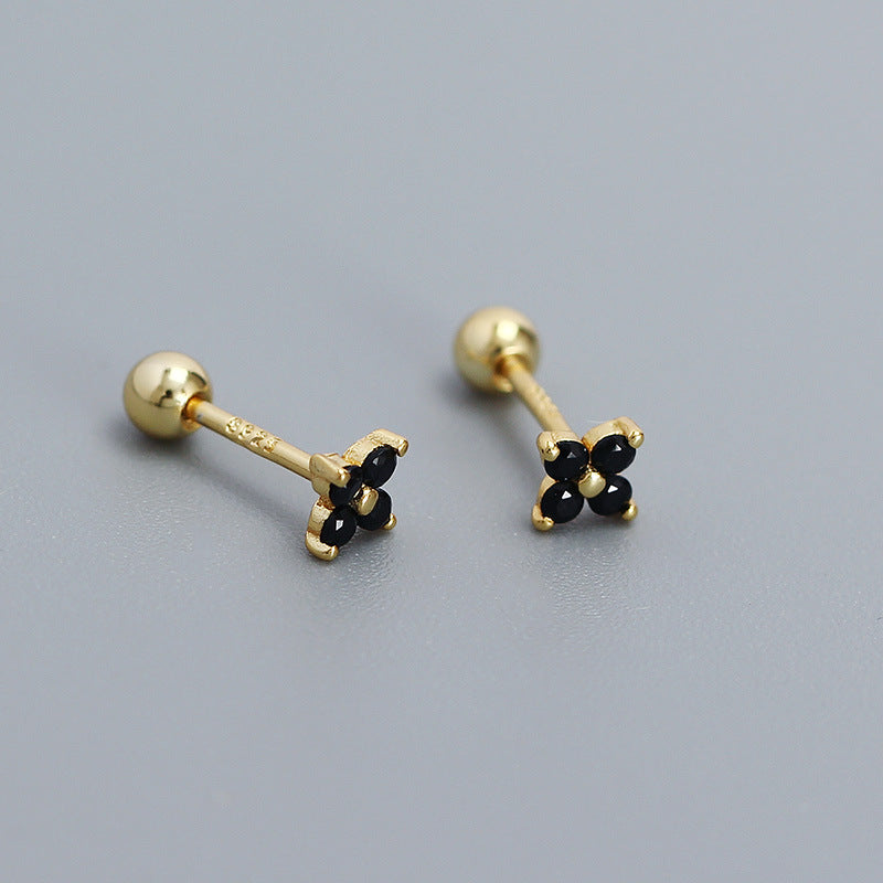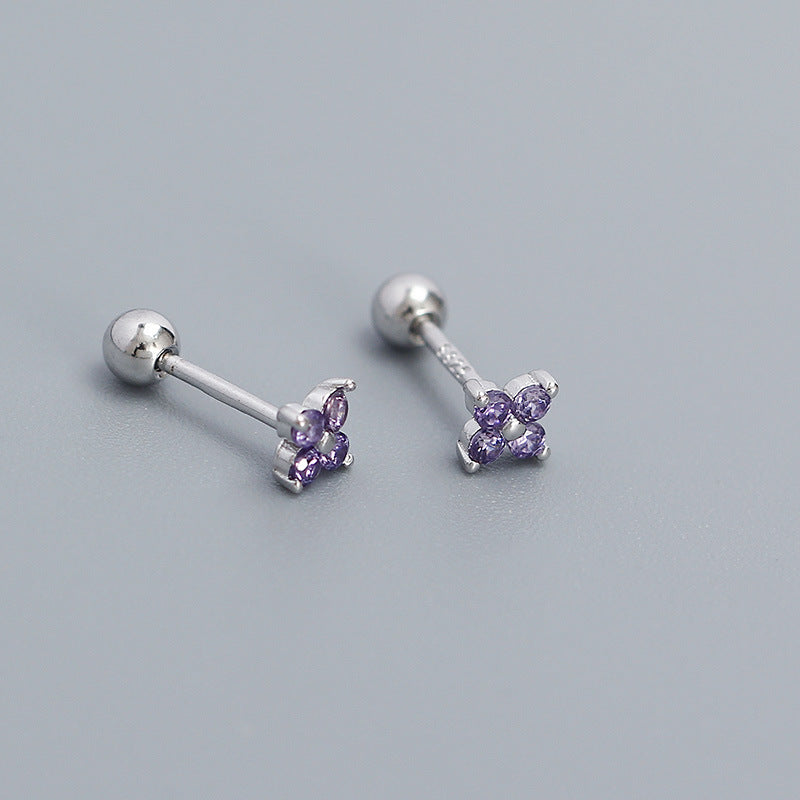 925 Sterling Silver Minimalist Flower Flower Silver Diamond Inlay Stud Earrings