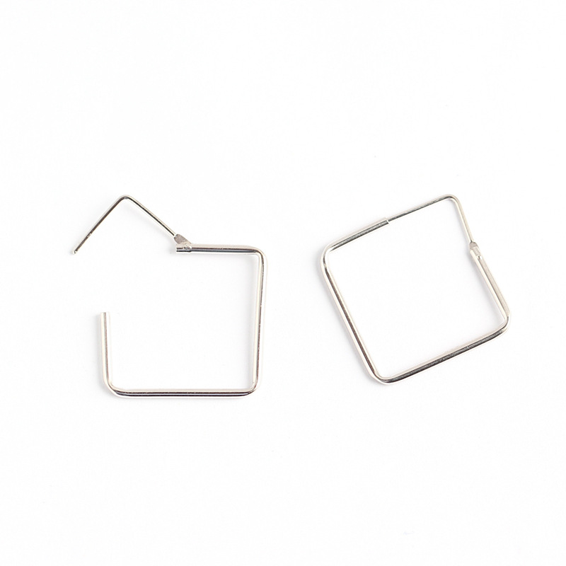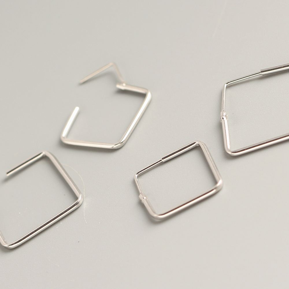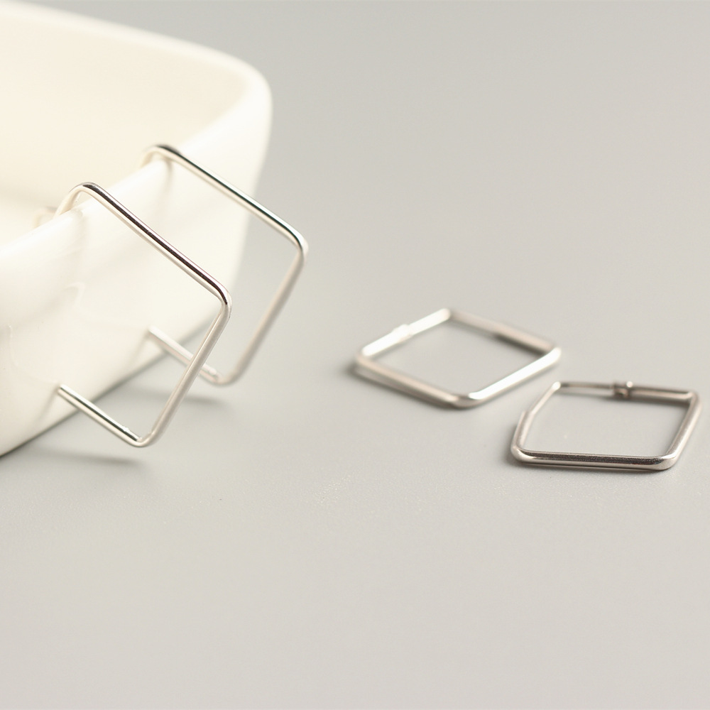 925 Sterling Silver Minimalist Women Square Silver Earrings
