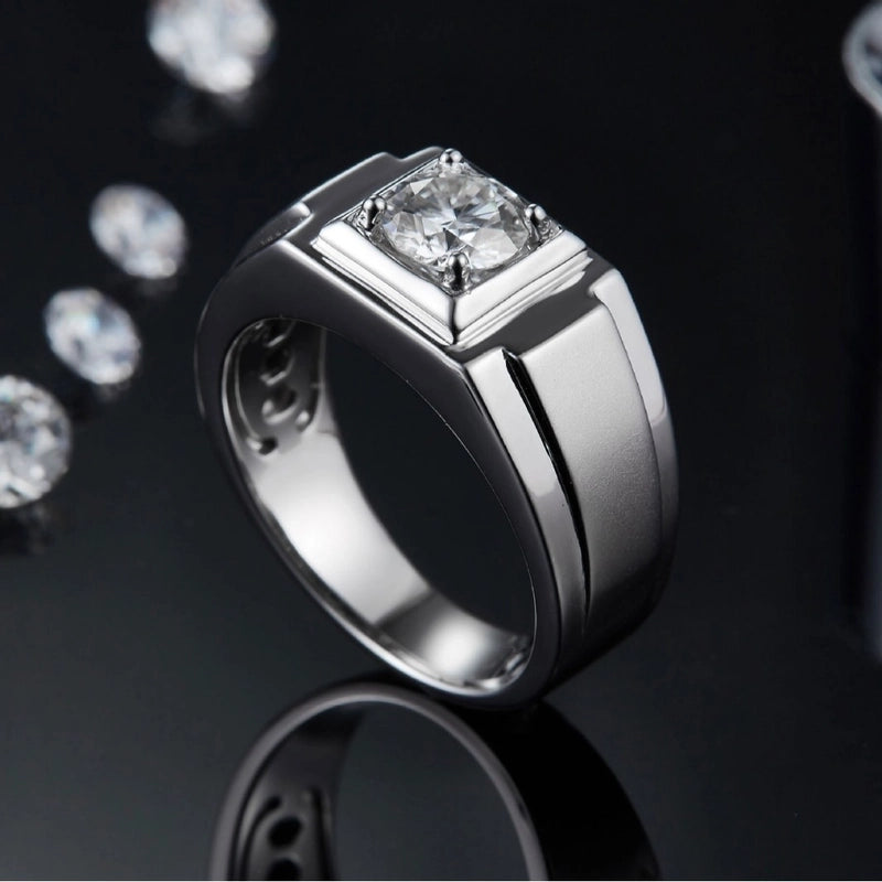 925 Sterling Silver Moissanite Geometric Rings GRA Certificate