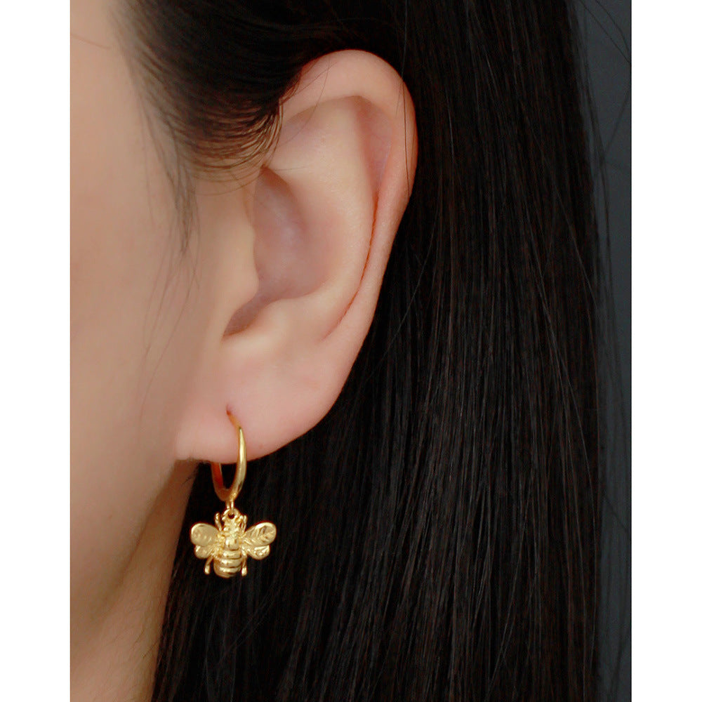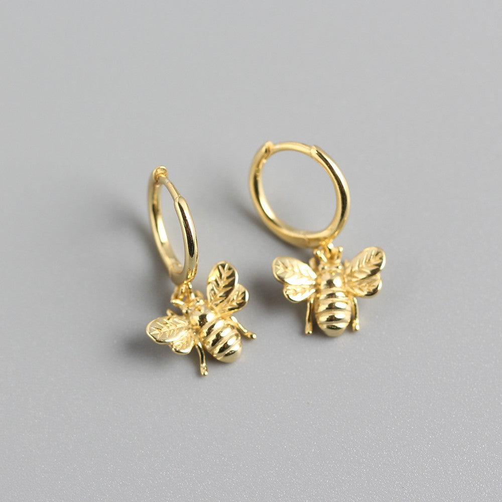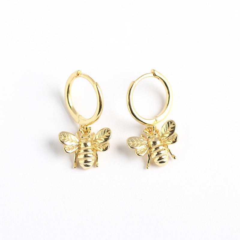 925 Sterling Silver Niche Women Bee Silver Gold Plating Earrings