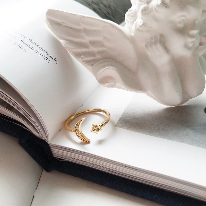 | Color | Star and Moon Ring J773, 18K Gold, Star and Moon Ring J773, Plain Silver |
