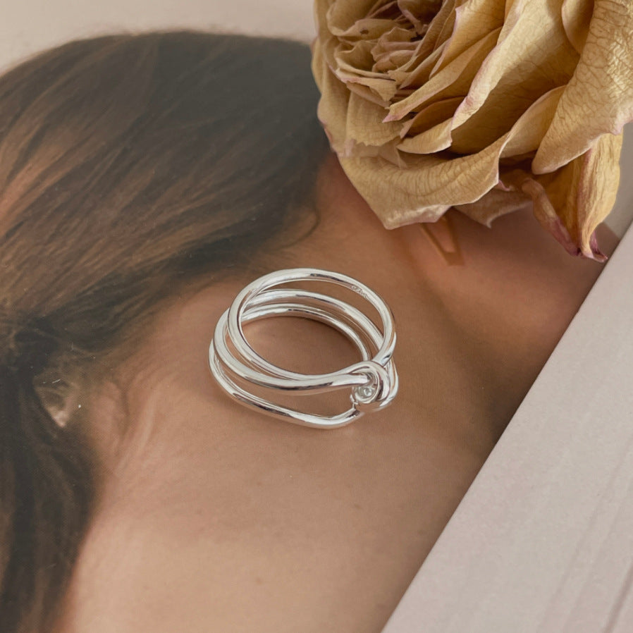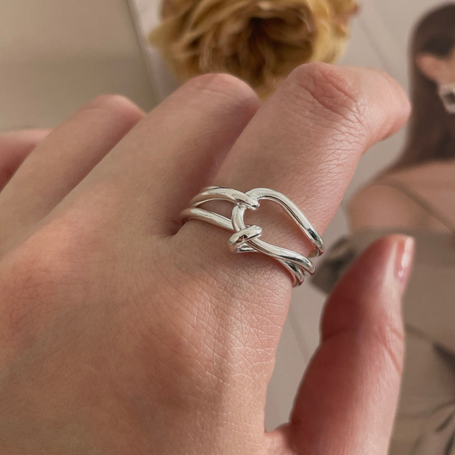 925 Sterling Silver Women Korean Chamfered Cube Geometric Silver Electroplating Rings