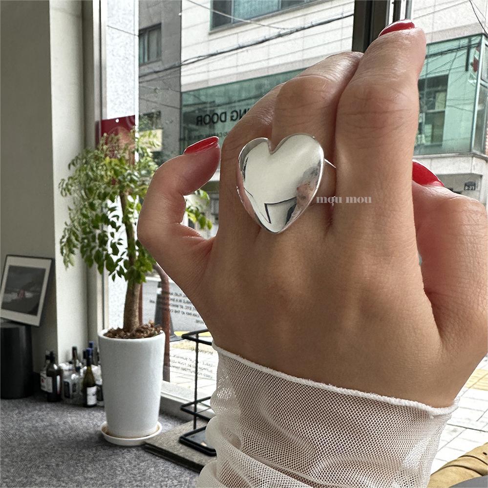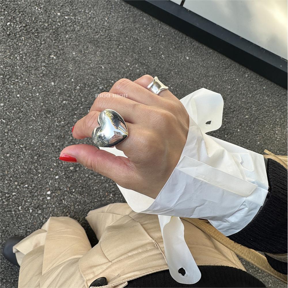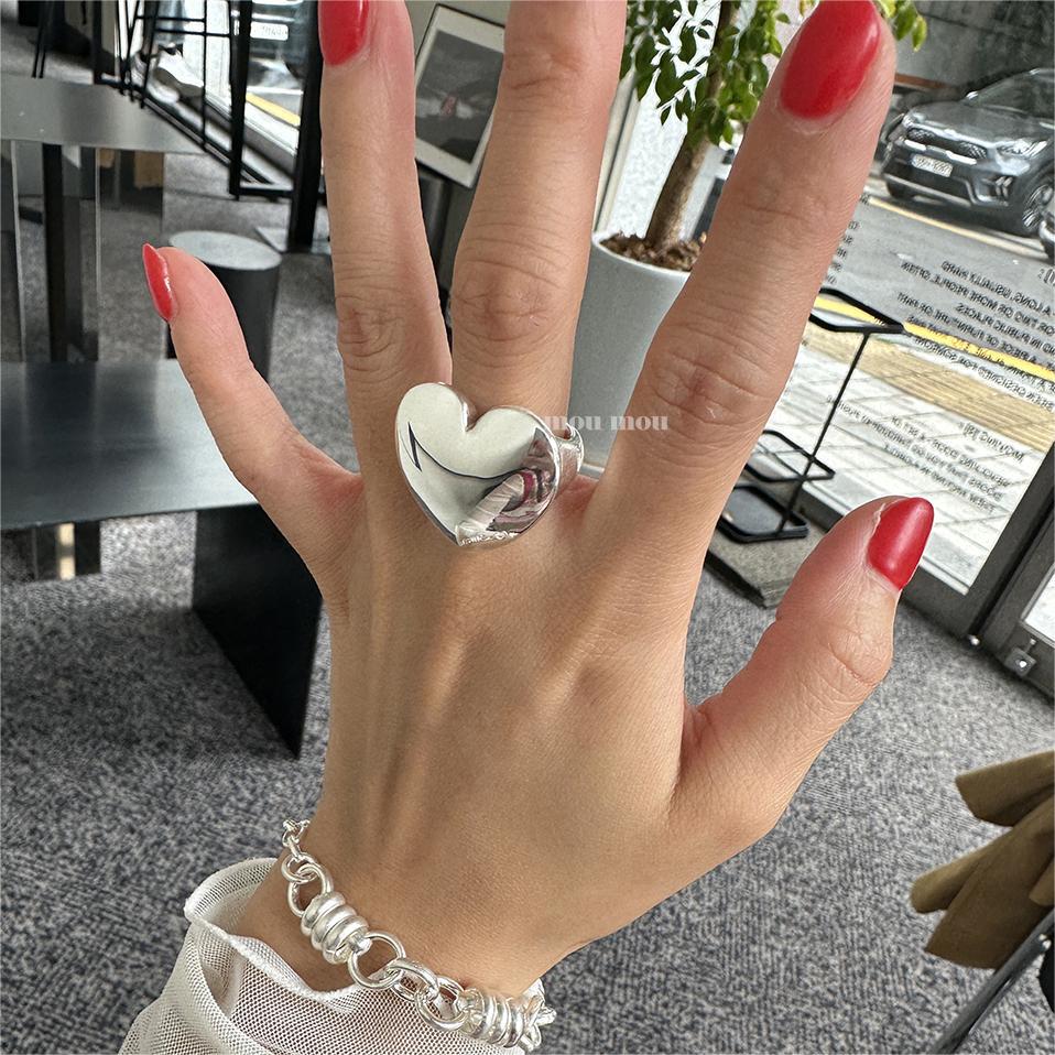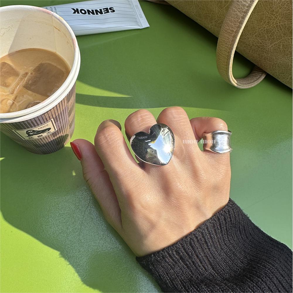 925 Sterling Silver Women Korean Chamfered Cube Heart Silver Electroplating Rings