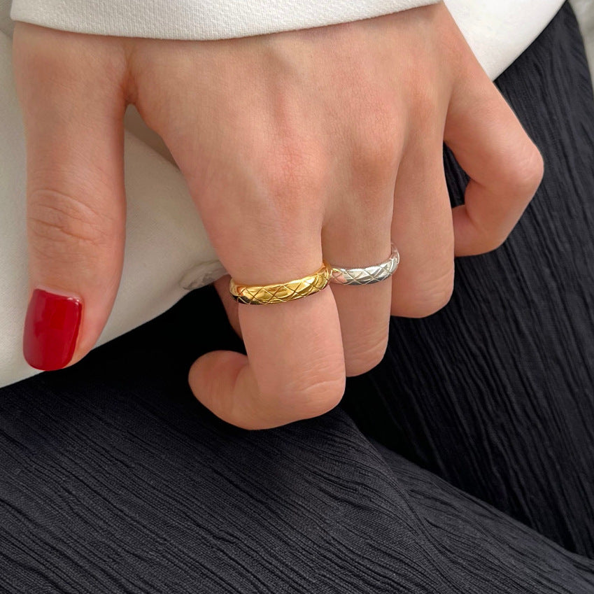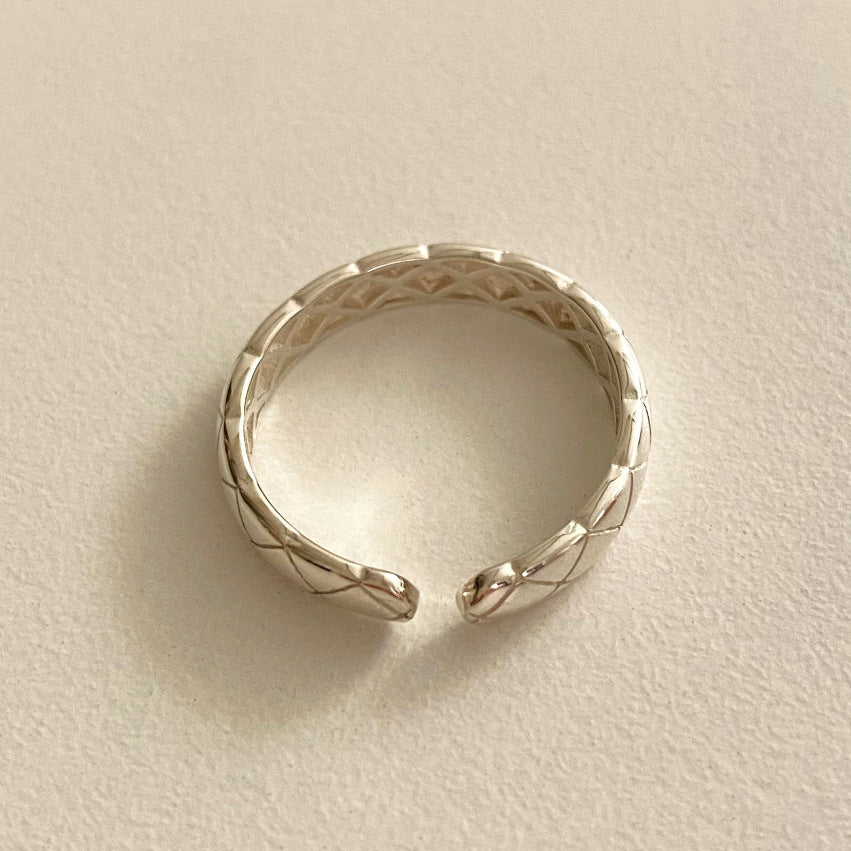 925 Sterling Silver Women Korean Chamfered Cube Heart Silver Silver Plating Rings