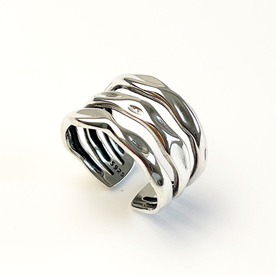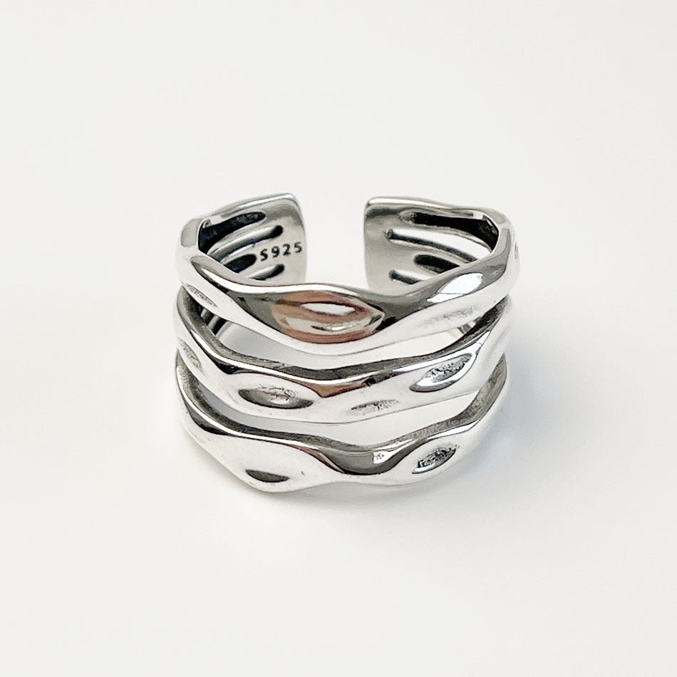 925 Sterling Silver Women Vintage Retro Irregular Silver Silver Plating Rings