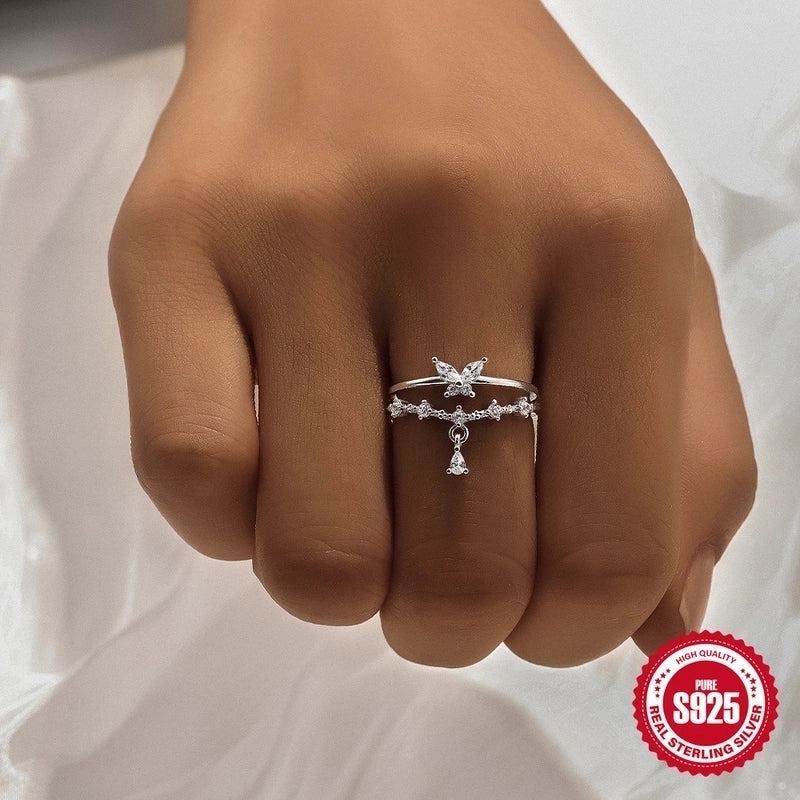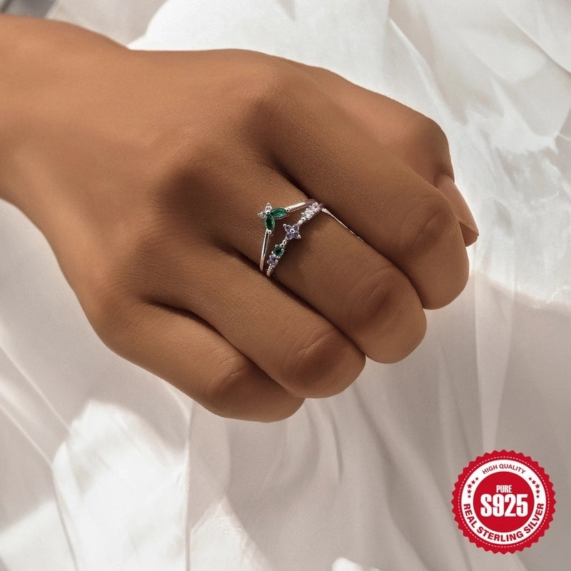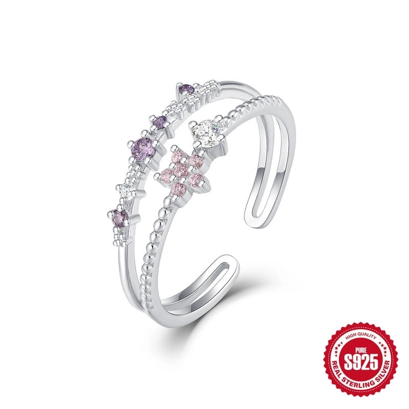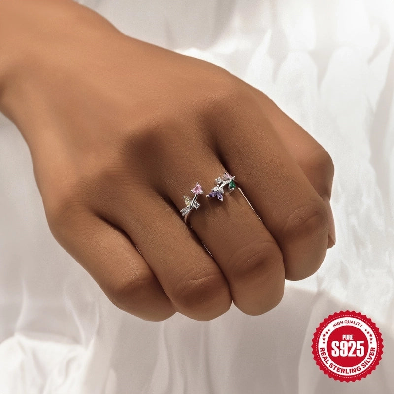 925 Sterling Silver Zircon Cross Flower Butterfly Open Rings