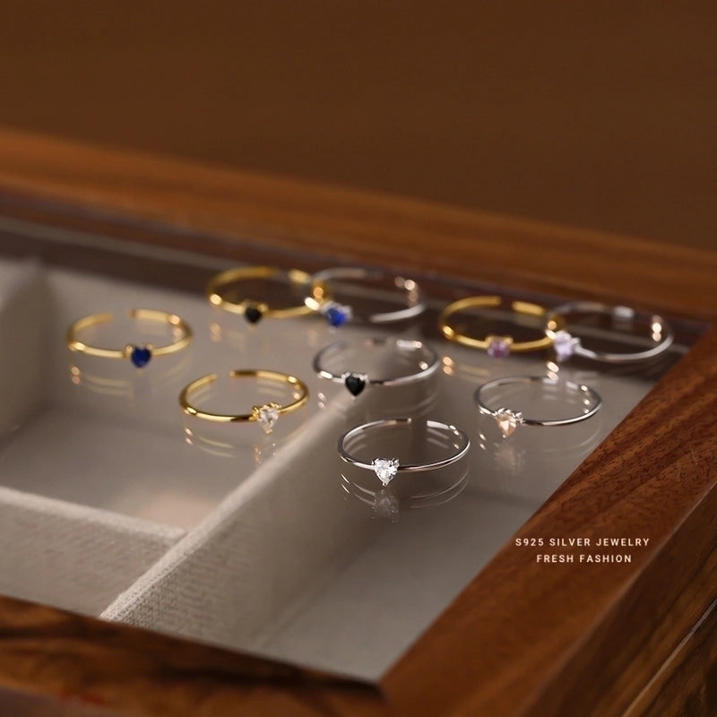 925 Sterling Silver Zircon Heart Shape Open Rings