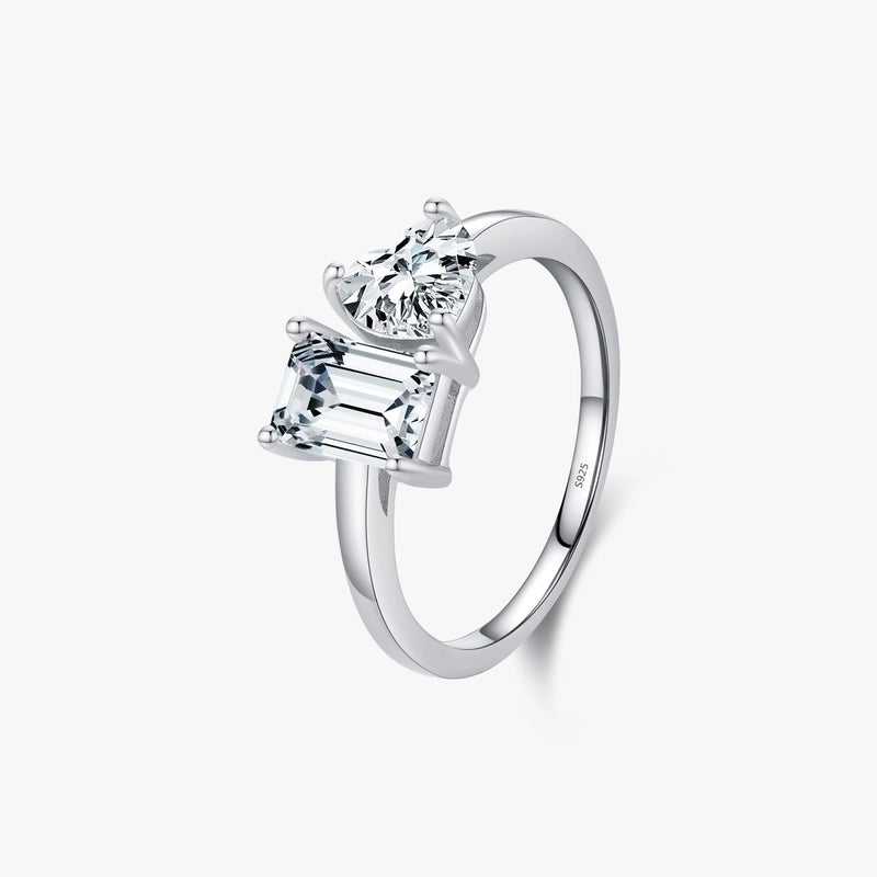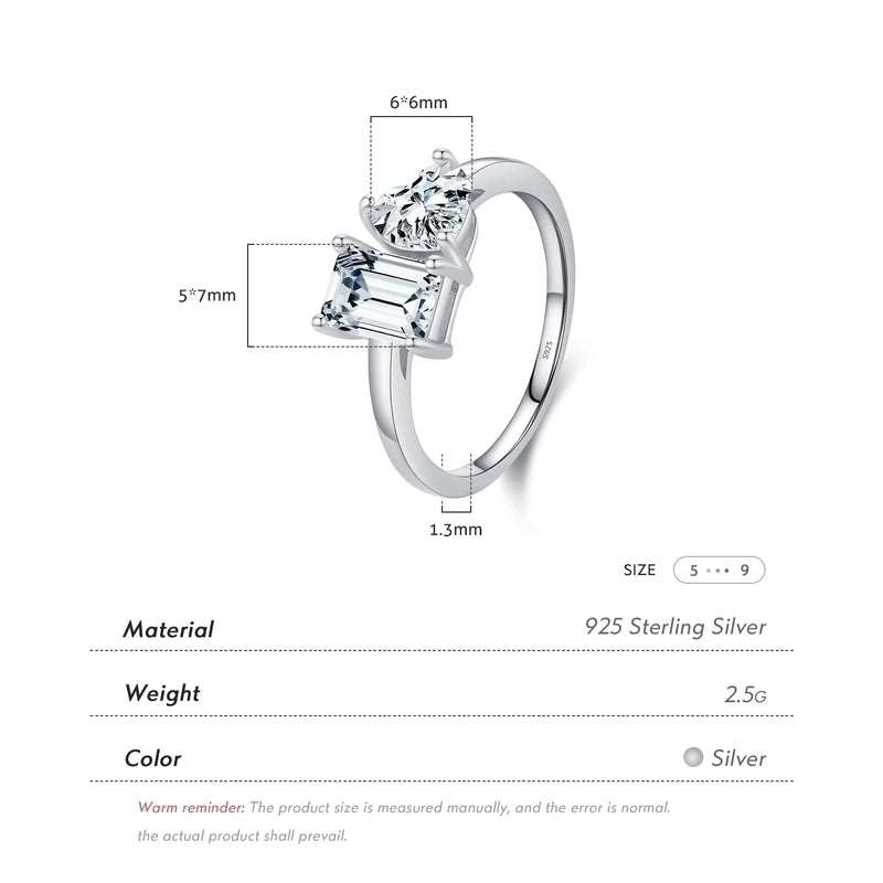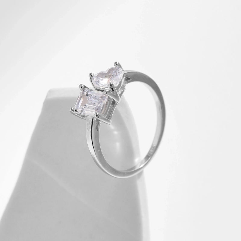 925 Sterling Silver Zircon Heart Shape Rectangle Rings
