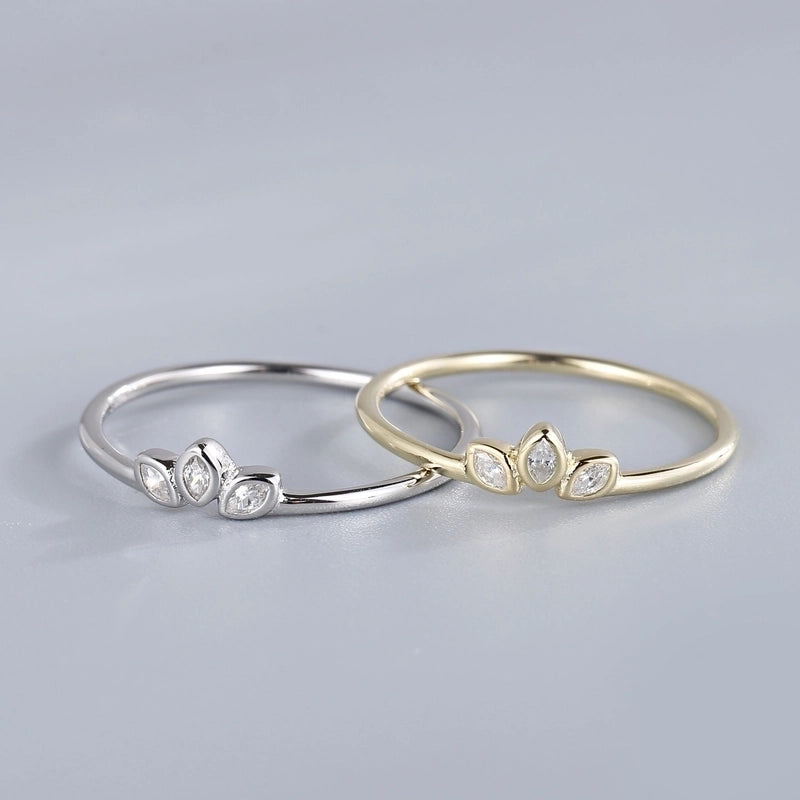 925 Sterling Silver Zircon Leaf Rings