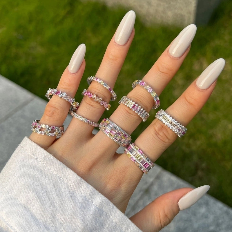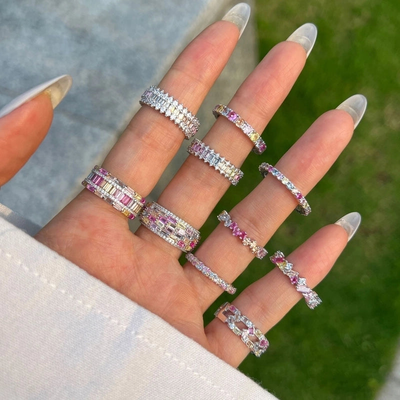 925 Sterling Silver Zircon Solid Color Rings