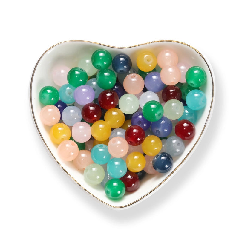 A Pack Of 30 50 PCS/Package Diameter 8mm Glass Imitation Jade Glass Beads Geometric Jewelry Accessories