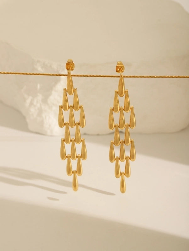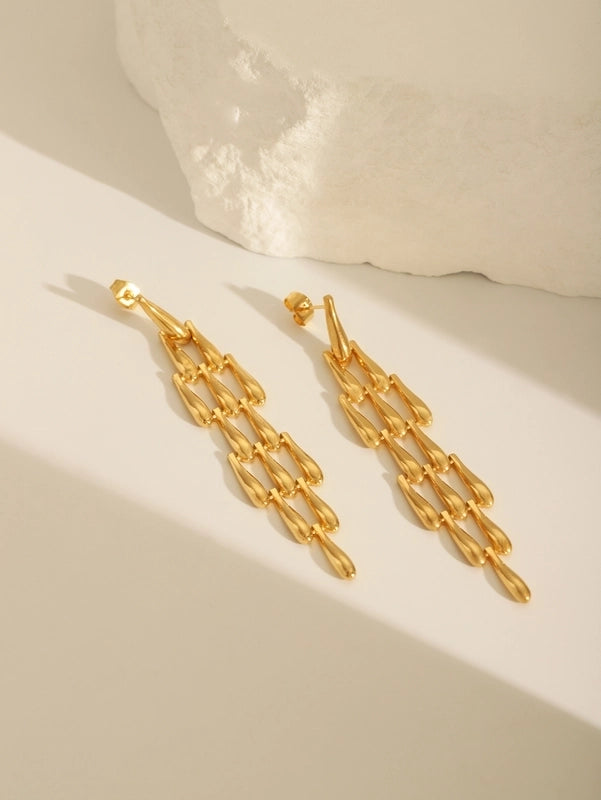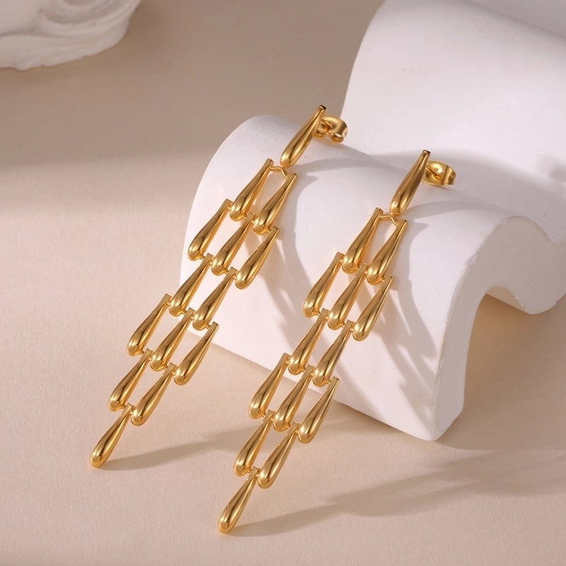 A Pair Of Exaggerated 18K Real Gold Stainless Steel Gold Water Drop Rhombus Long Earrings Suitable For Women’s Daily Wear