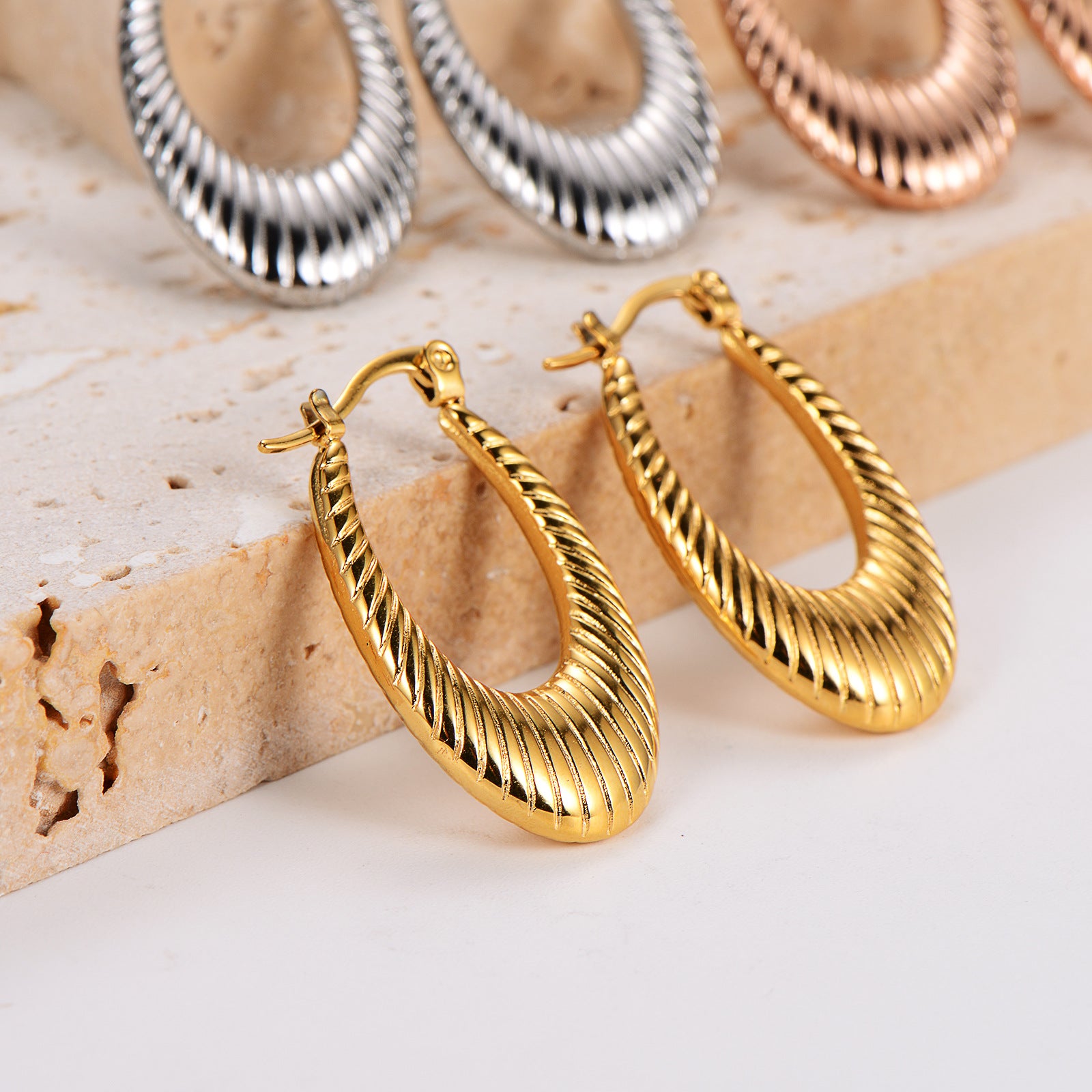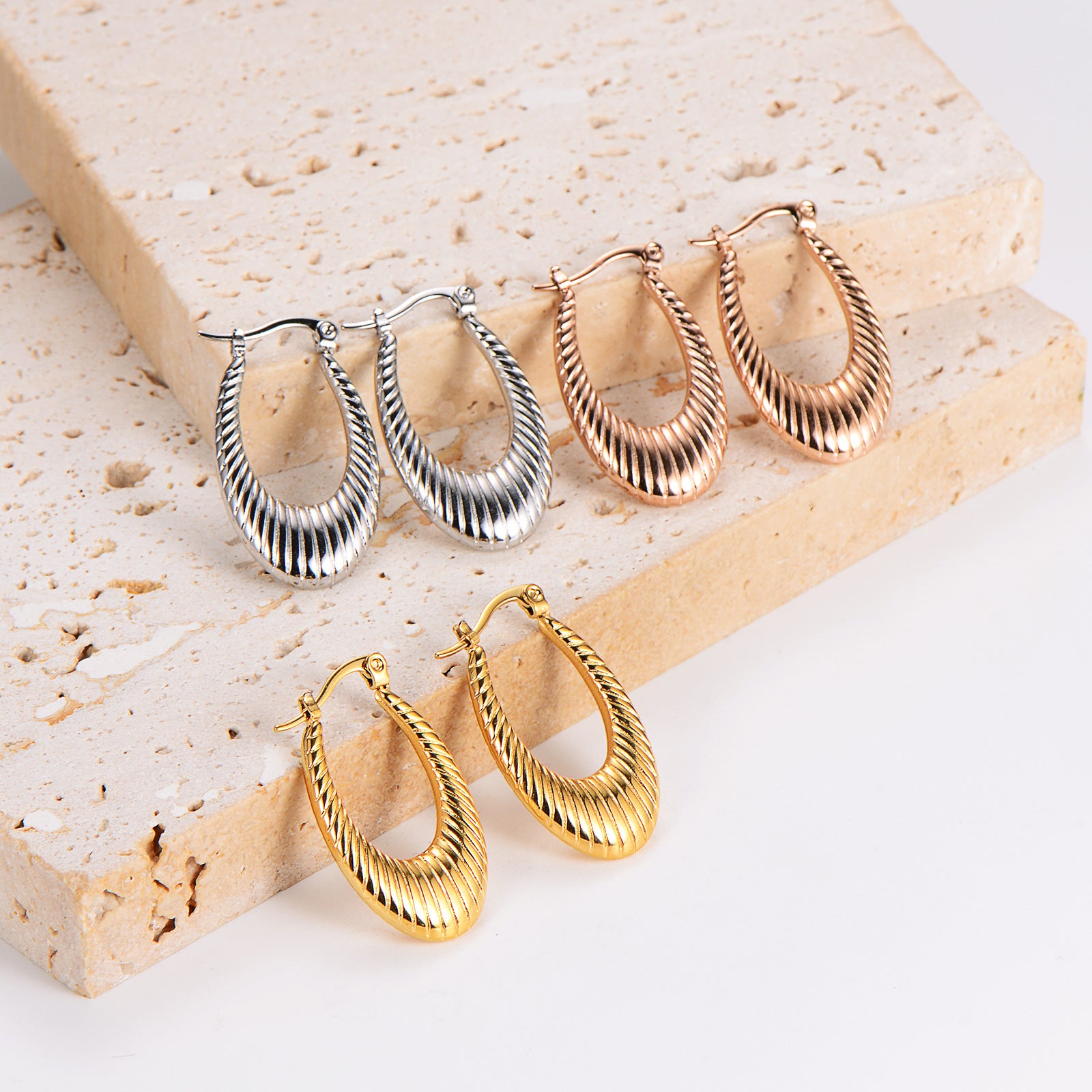 Be the first to review “Aml Fashion Simple Personality Niche Geometric Unique Stripe Design U-Shaped Earrings” Cancel reply